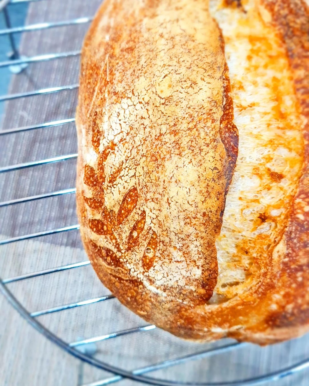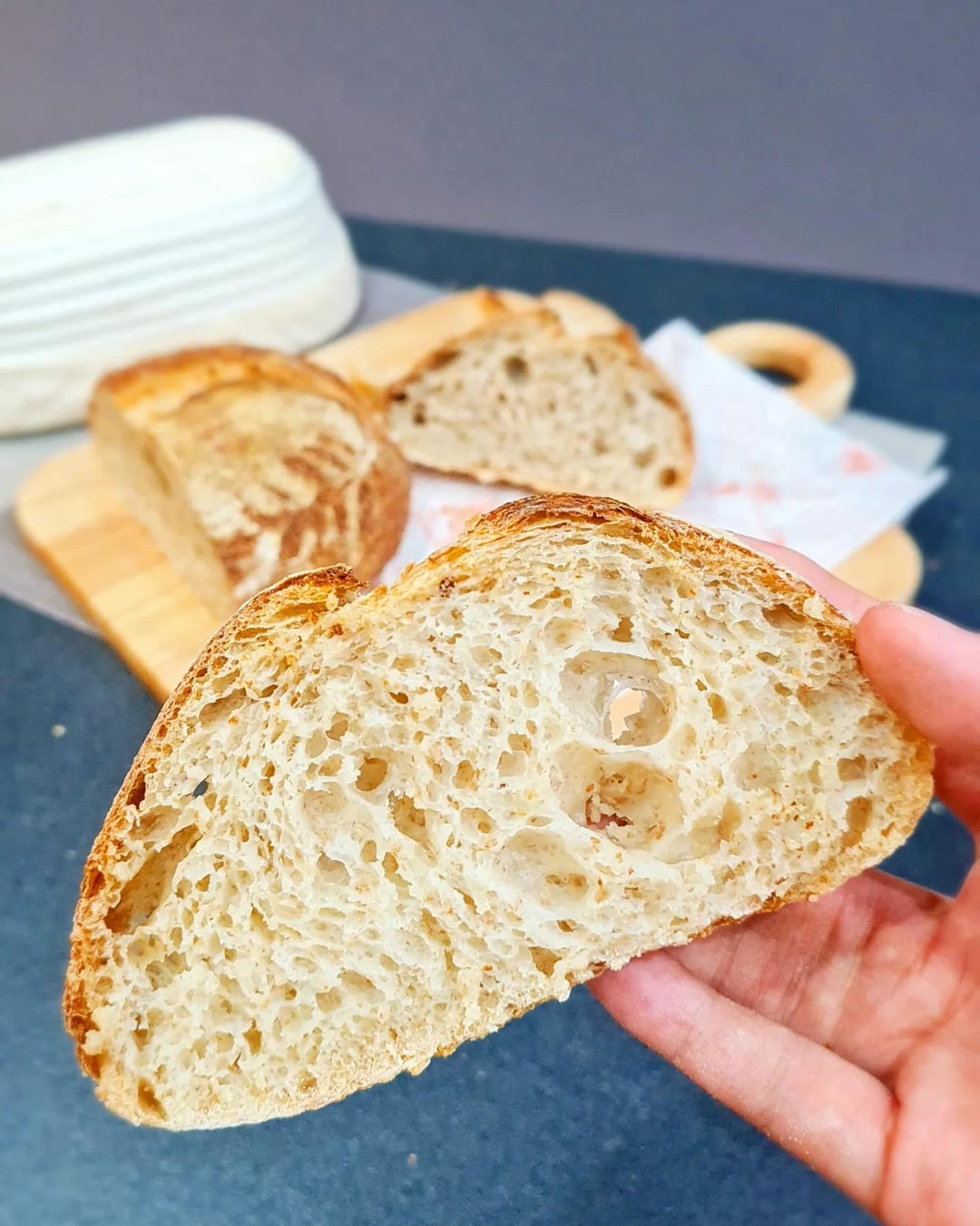My 1st time making Sourdough bread without Dutch Oven, love the open crumbs, using self cultivated sourdough starter