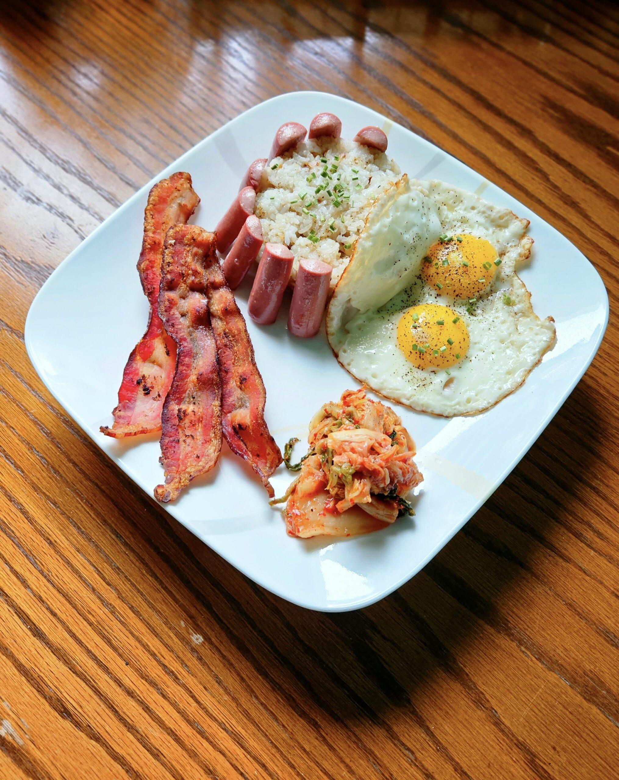 I love all of these breakfast food plates that include kimchi. It’s just awesome with eggs and bacon.