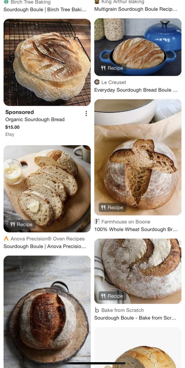 I wanted to see some pics of sourdough boules to compare against my most recent bake (I suspect it’s overproofed again) and when I googled “sourdough boule” I got tons of pics that don’t compare to most of the loaves posted here! Even a few cut open where it’s clear that it was under fermented or something else went wrong (tunnels, uneven crumb, etc).