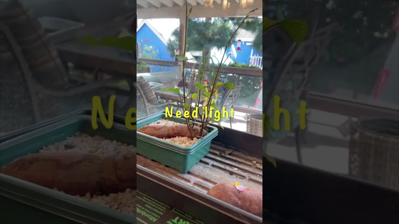 In this video, I show how to grow sweet potatoes slips. Slips are the stems that grow from an organic seed potato. Sweet potatoes grow from slips. When the slip grows to a length of 8-12 inches, it should be removed from the seed potato, leaves stripped, then either planted straight away or placed in water to develop roots.