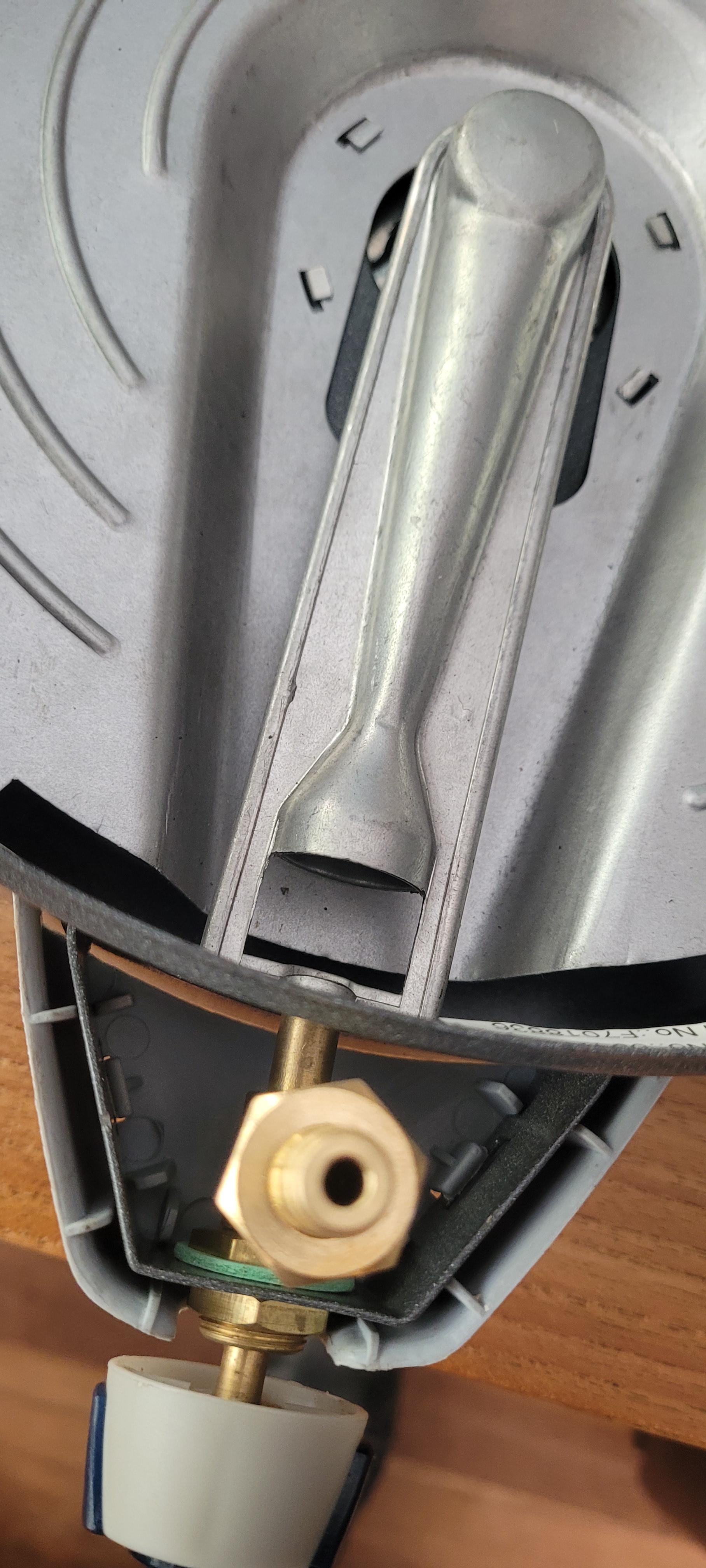 The gas line doesnt seem te fully be attached in the bottom of the cadac (see image)