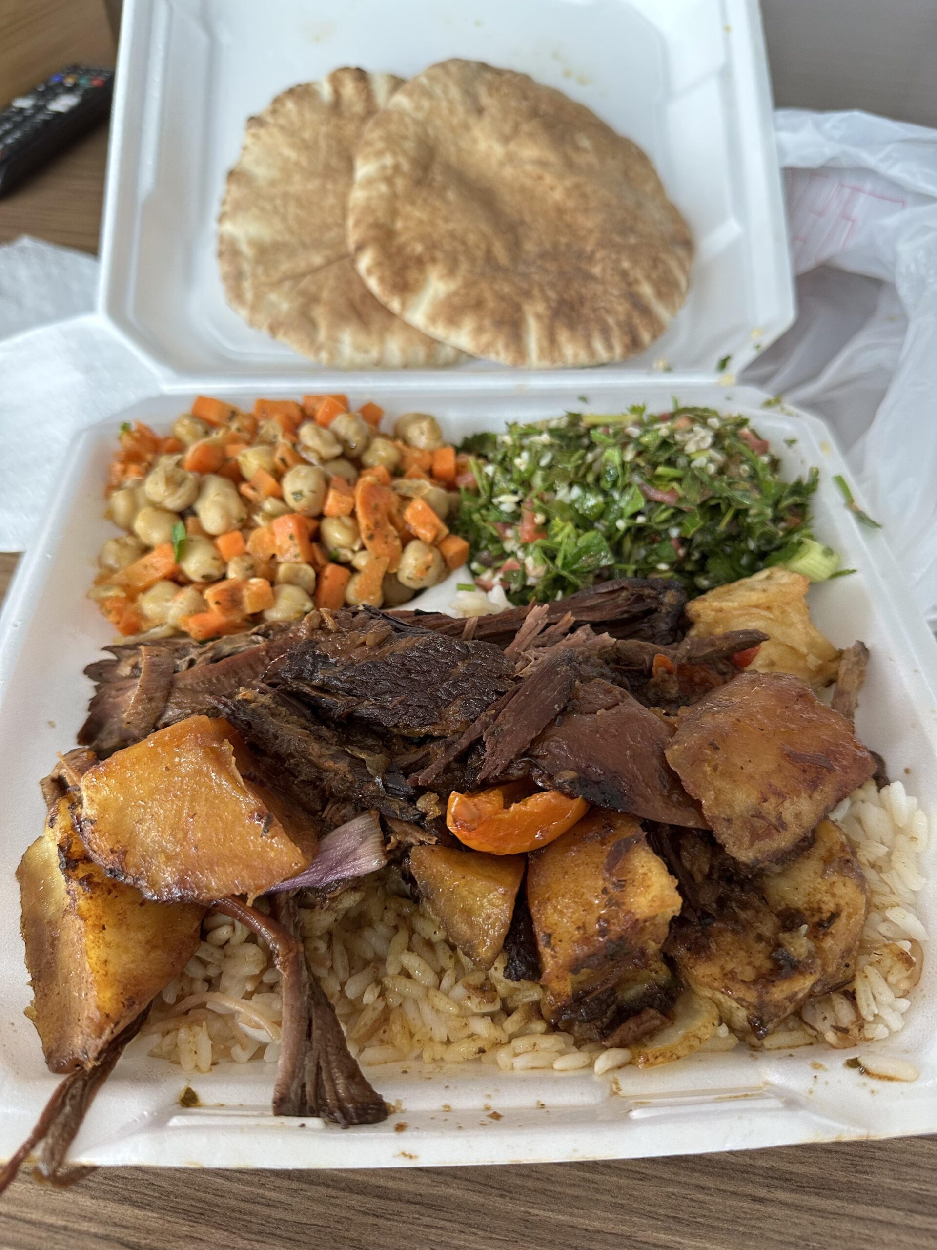 I love Peace bakery’s baba ganoush and muhamarrah, but didn’t realize they did brisket.