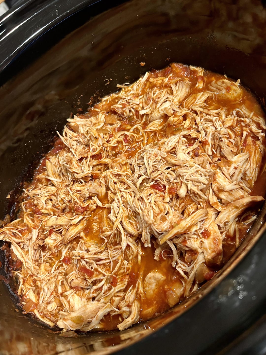 Add all ingredients to slow cooker. I cooked on high for 4 hours, switched to low for 1 hour. Remove the chicken, shred with two forks, add back to slow cooker and mix everything together. I served this with lettuce, tomato, avocado, sour cream and cheese, white rice on the side. It was a perfect meal after a busy day.
