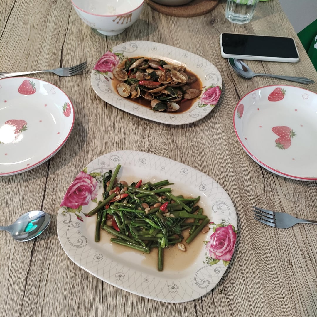 Living in Thailand I’m not sure I would eat these on the street. They do not have a way to keep them cold. But when you buy them from the fisherman you can be sure that they’re fresh. This is what my girl made me for breakfast this morning. She is a definite keeper.