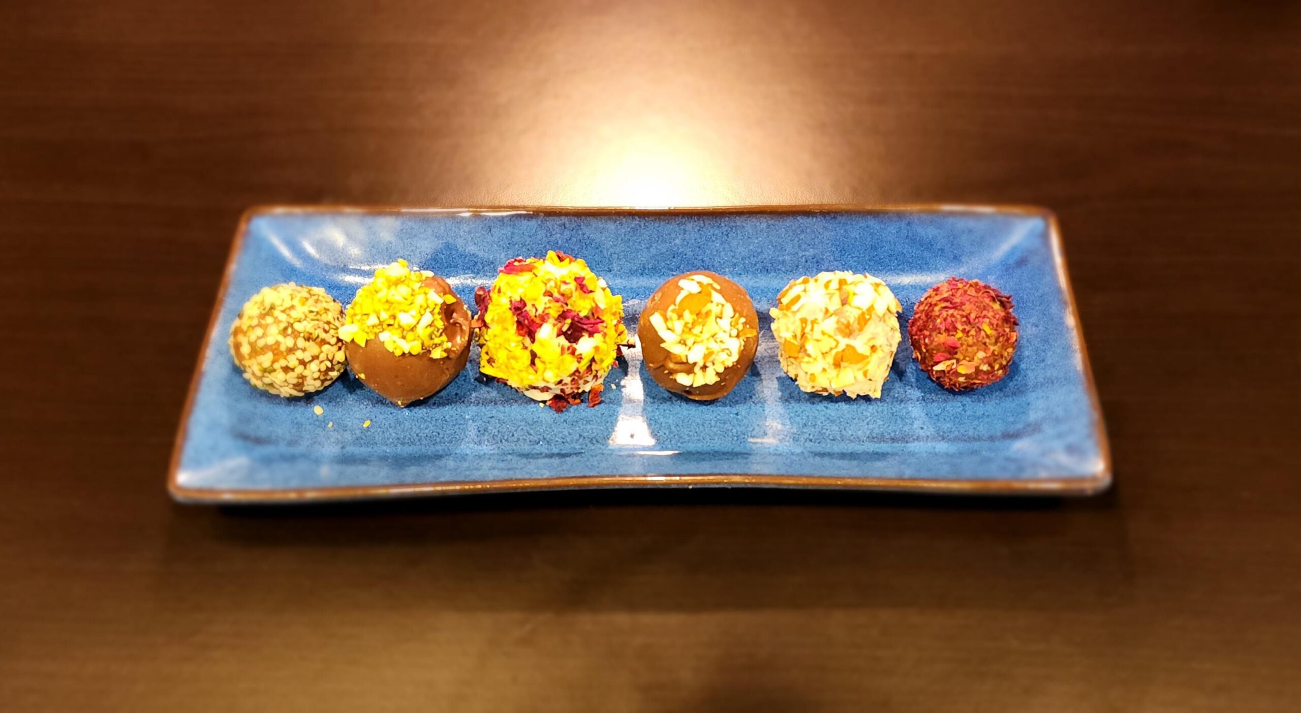 5) Roll the dry fruit balls in hemp seeds, dried rose petals, Almonds, pistachios based on your preference.