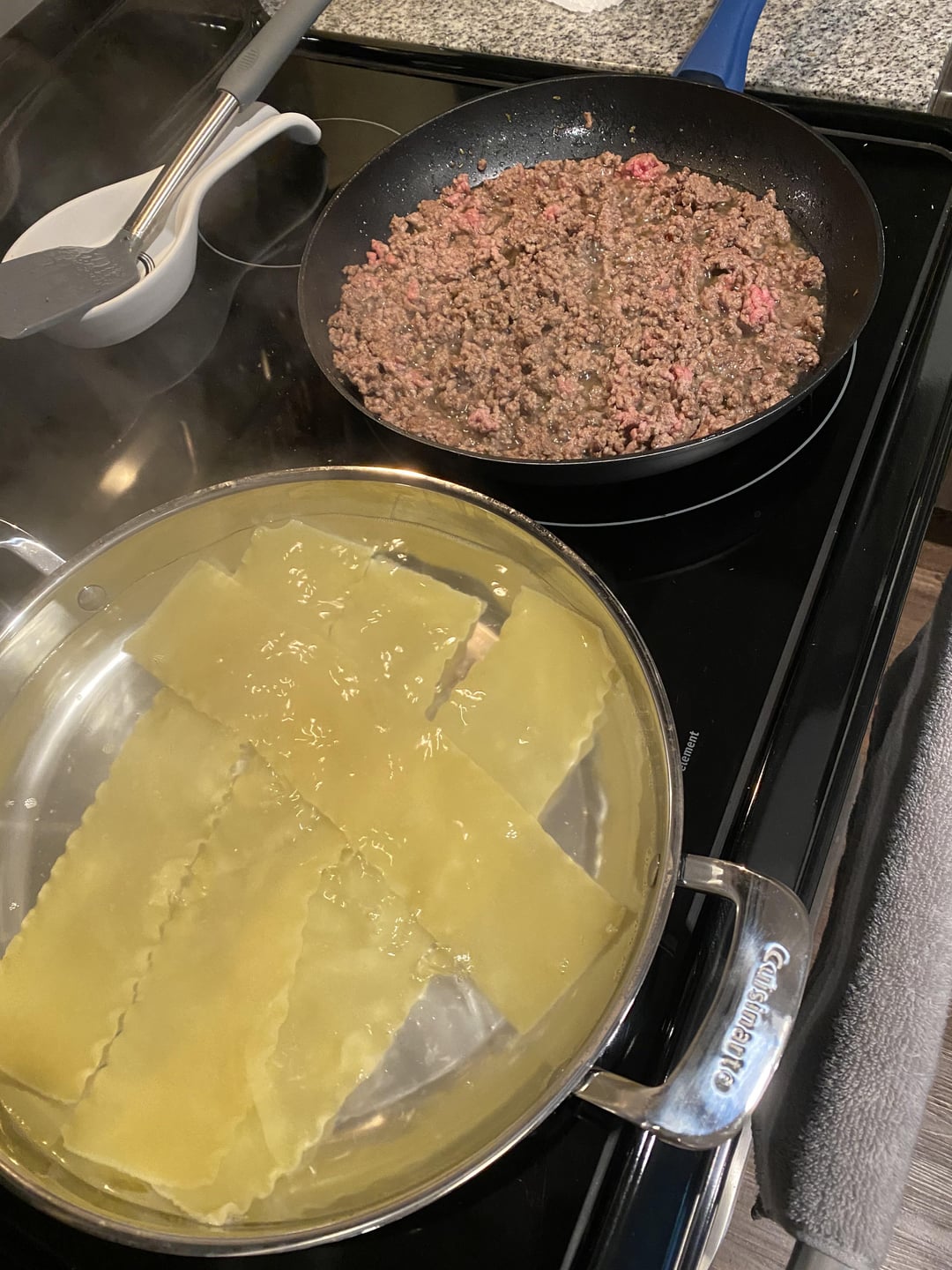 For some reason this week I’ve had a hankering for lasagna. I made a four layer that’s in the oven right now. 🤤