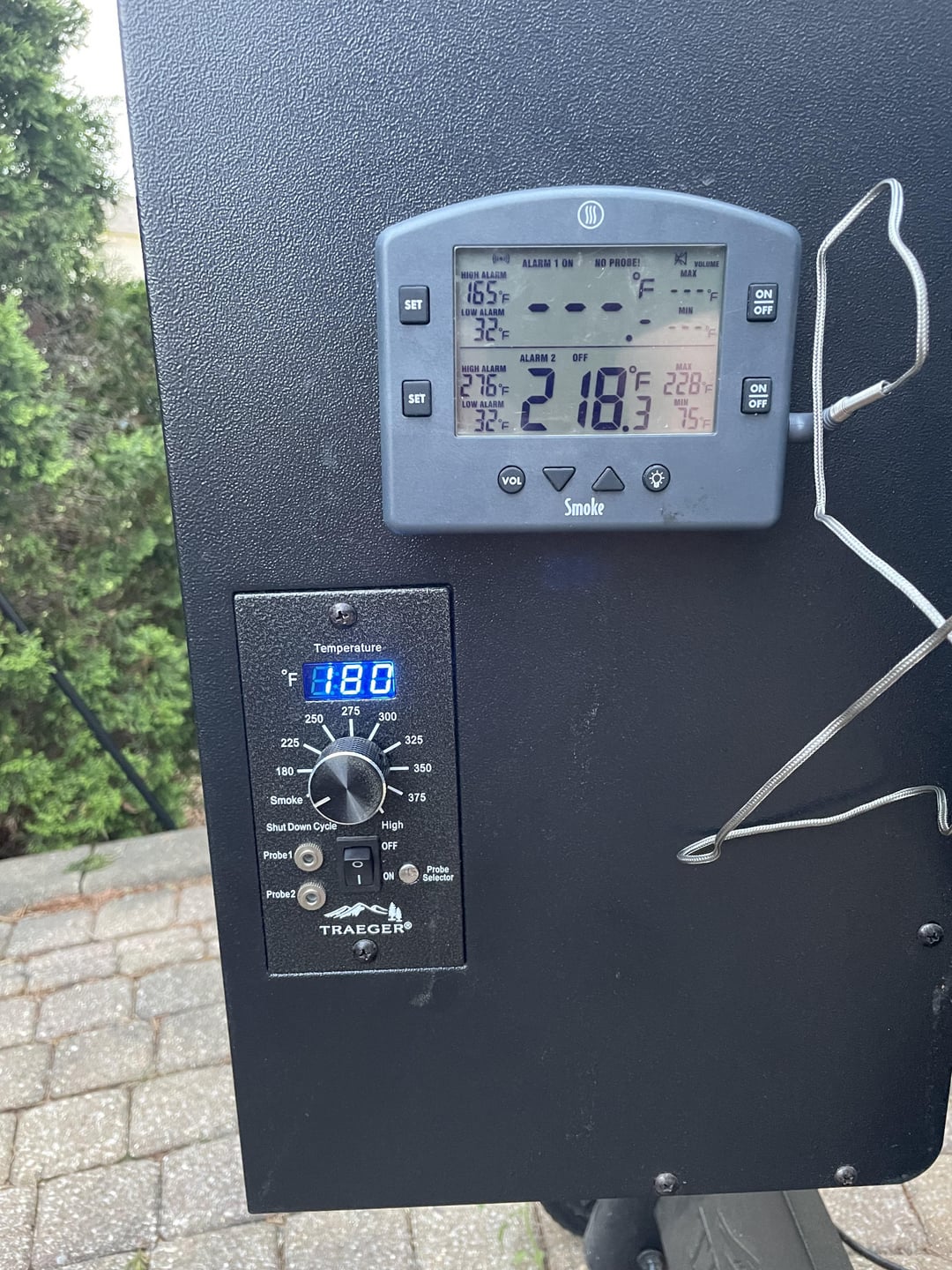 3. It was towards the other end of Traeger probe but moved it closer. Still a bit off. Not happy that set at 180 and goes almost 250