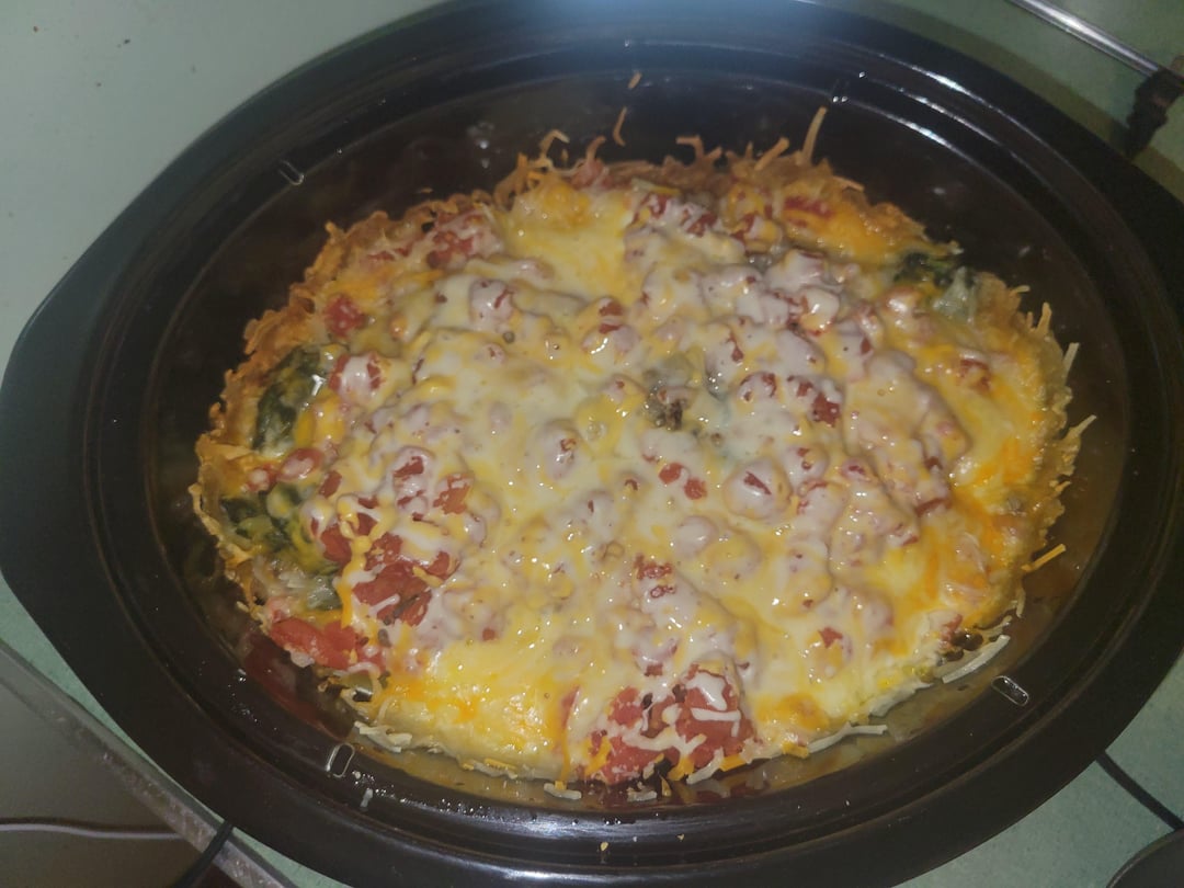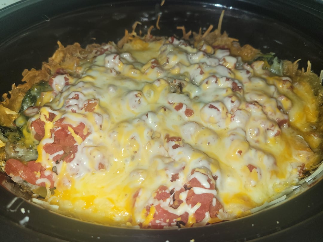 – Mild Italian sausage (fully cooked before going into crockpot)