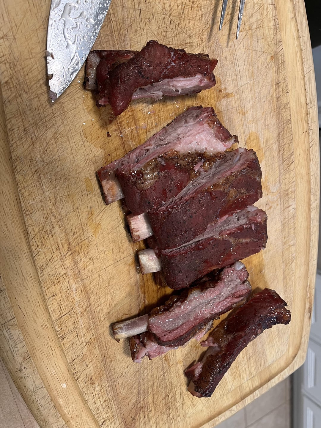 Added some wings for the last hour of the cook, and both the ribs and wings turned out beautifully, lots of smoke flavor and pretty tender. Smoked at 200 and turned the grill all the way to 500 to get some crips. Worked out very well. Overall made a novice smoker feel pretty good.