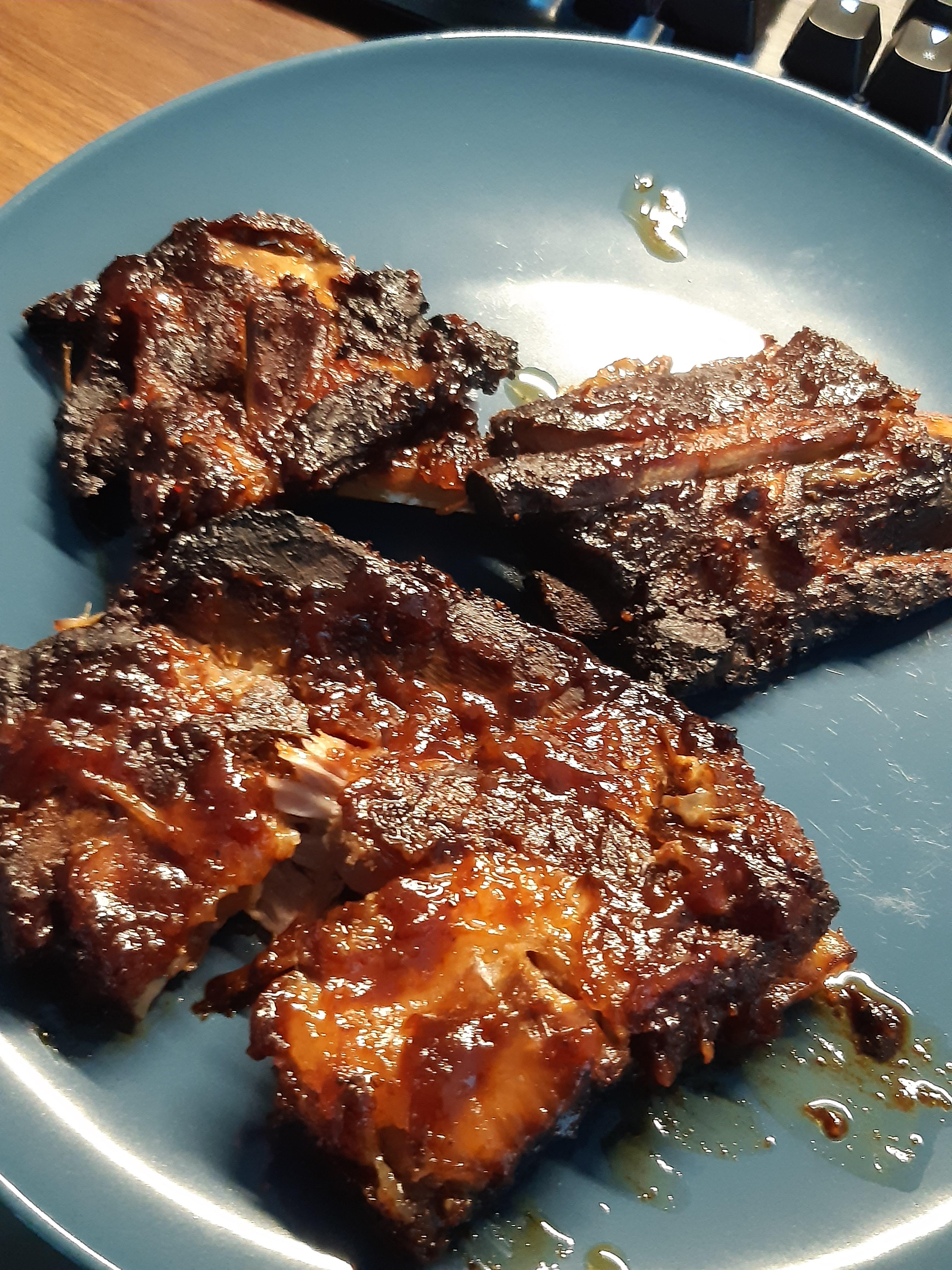 I had them on low for about 6hours and 30 minutes. Used 450g of ribs and put some rub and bbq sauce on them. Havent tasted them yet but I’m curious if this looks too cooked?