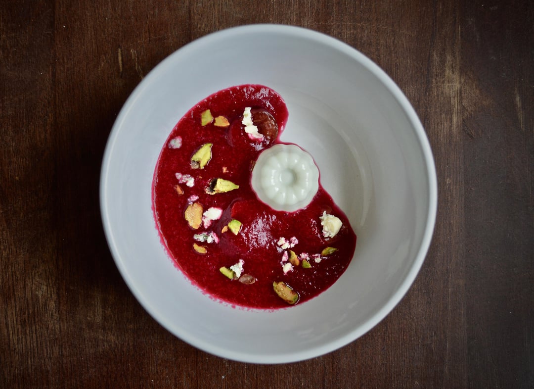Sweet Grass Dairy Asher Blue Panna Cotta, Beet Gazpacho, Pickled Cherry, Candied Pistachio by SpeakEasyChef Write A CommentYou must be logged in to post a comment.