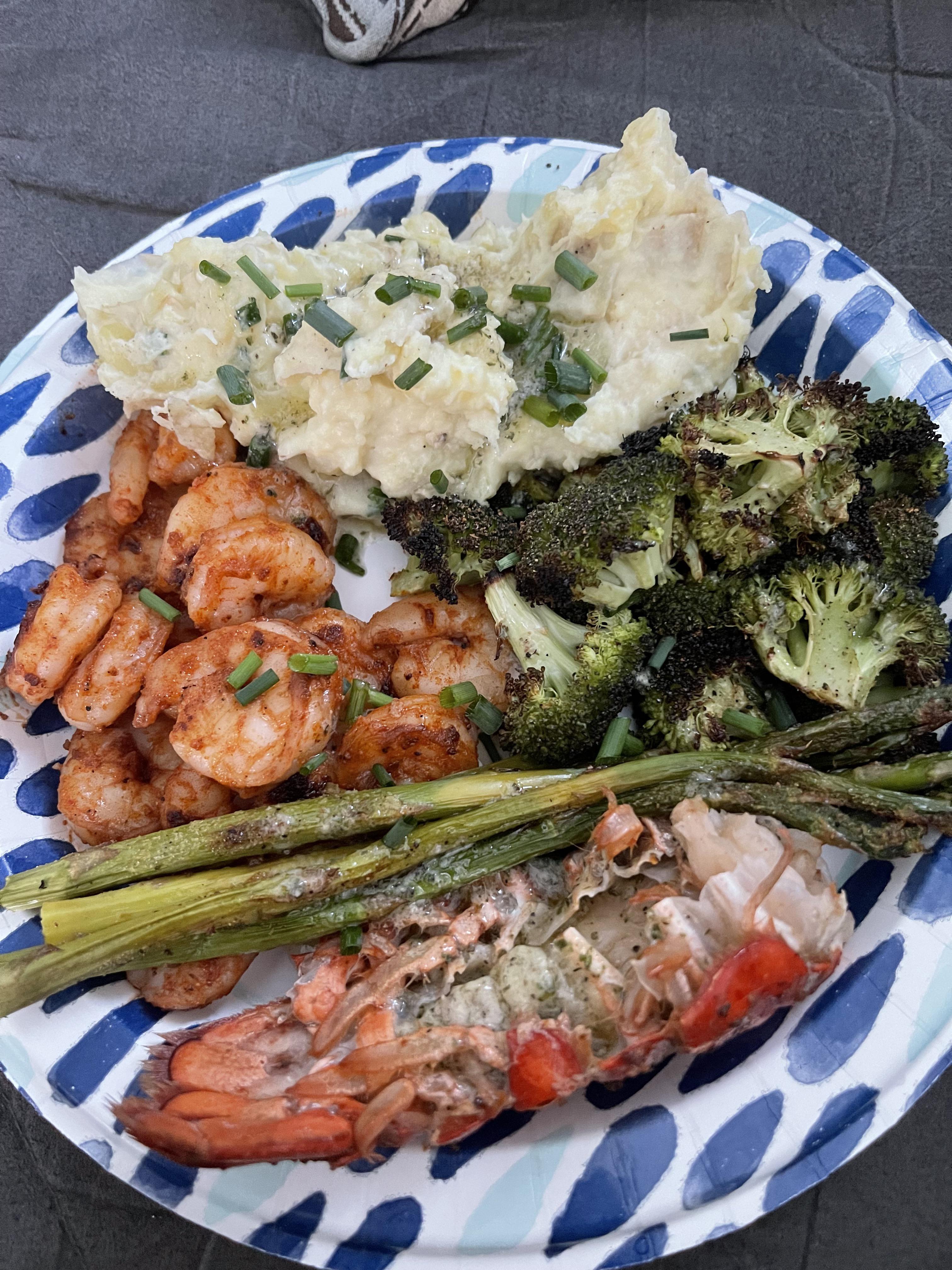 My husband and I don’t really buy the gourmet meals anymore (we used to get one about every other week), but this was a good one (Garlic Herb Butter Shrimp & Lobster Tails). It was very quick and low-carb and low-calorie (yes, I know it probably wasn’t great for our arteries). It was a little too pricey to get again but nice as a one-time treat.