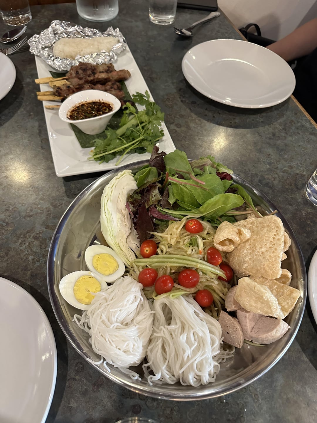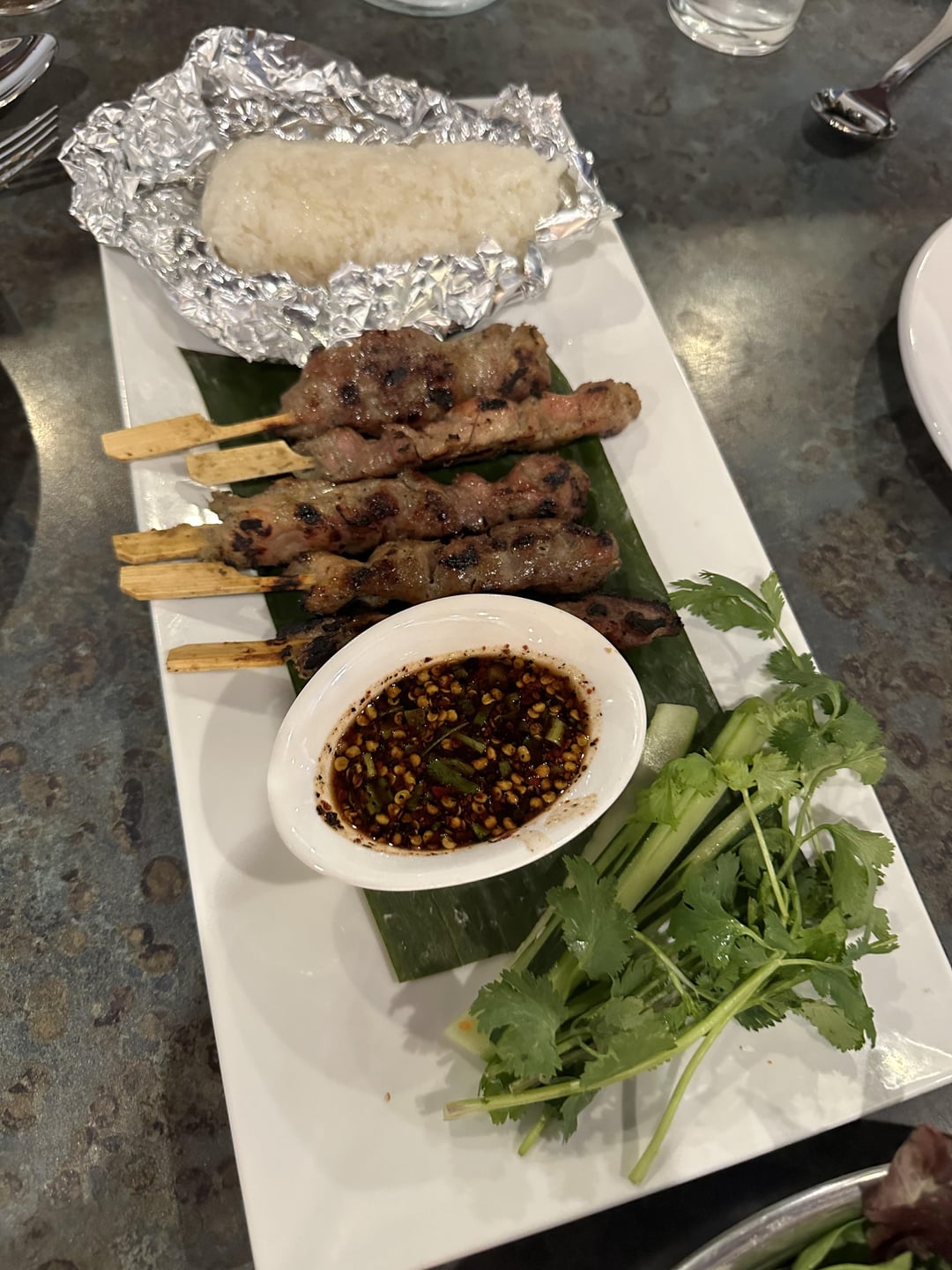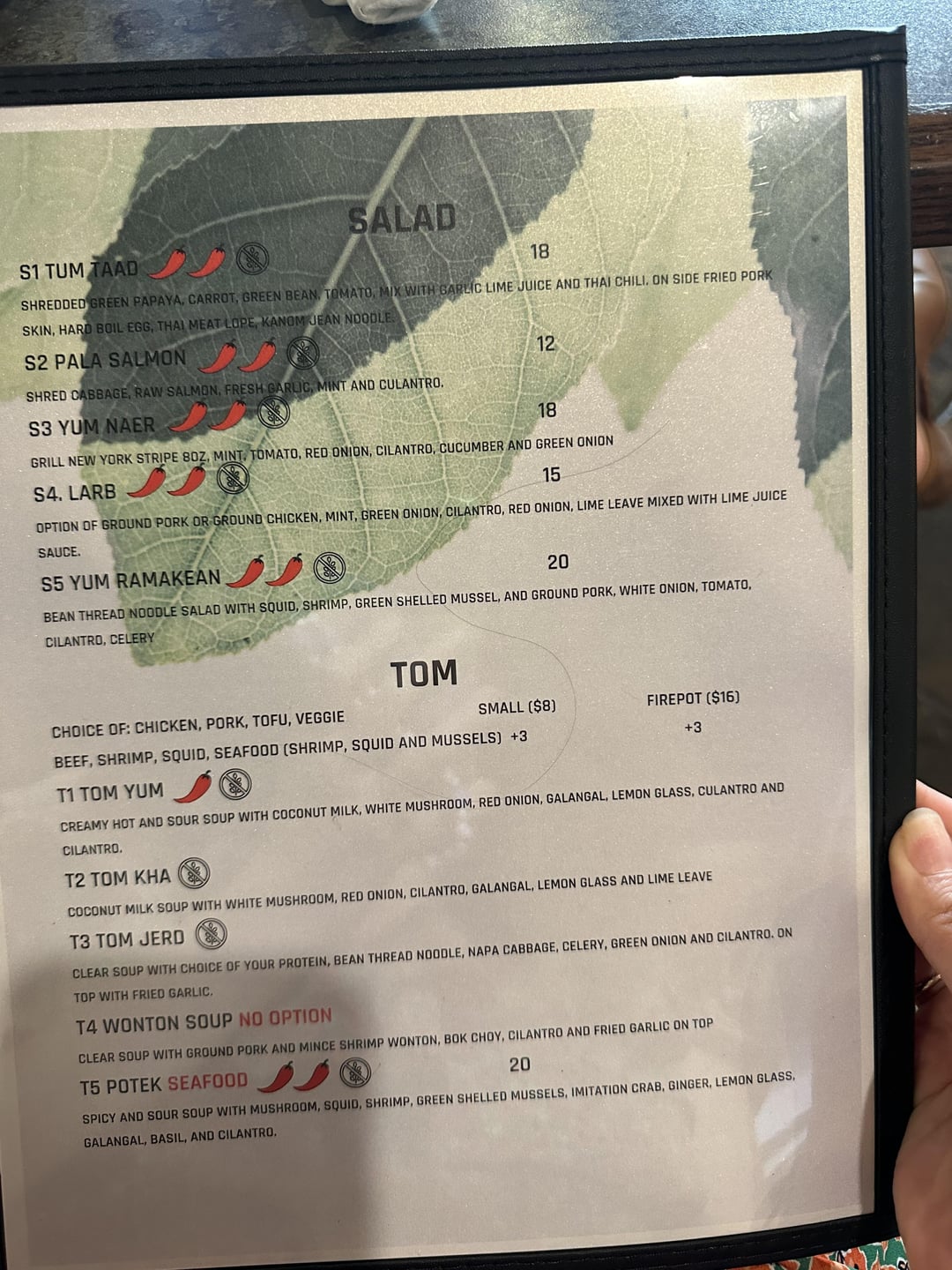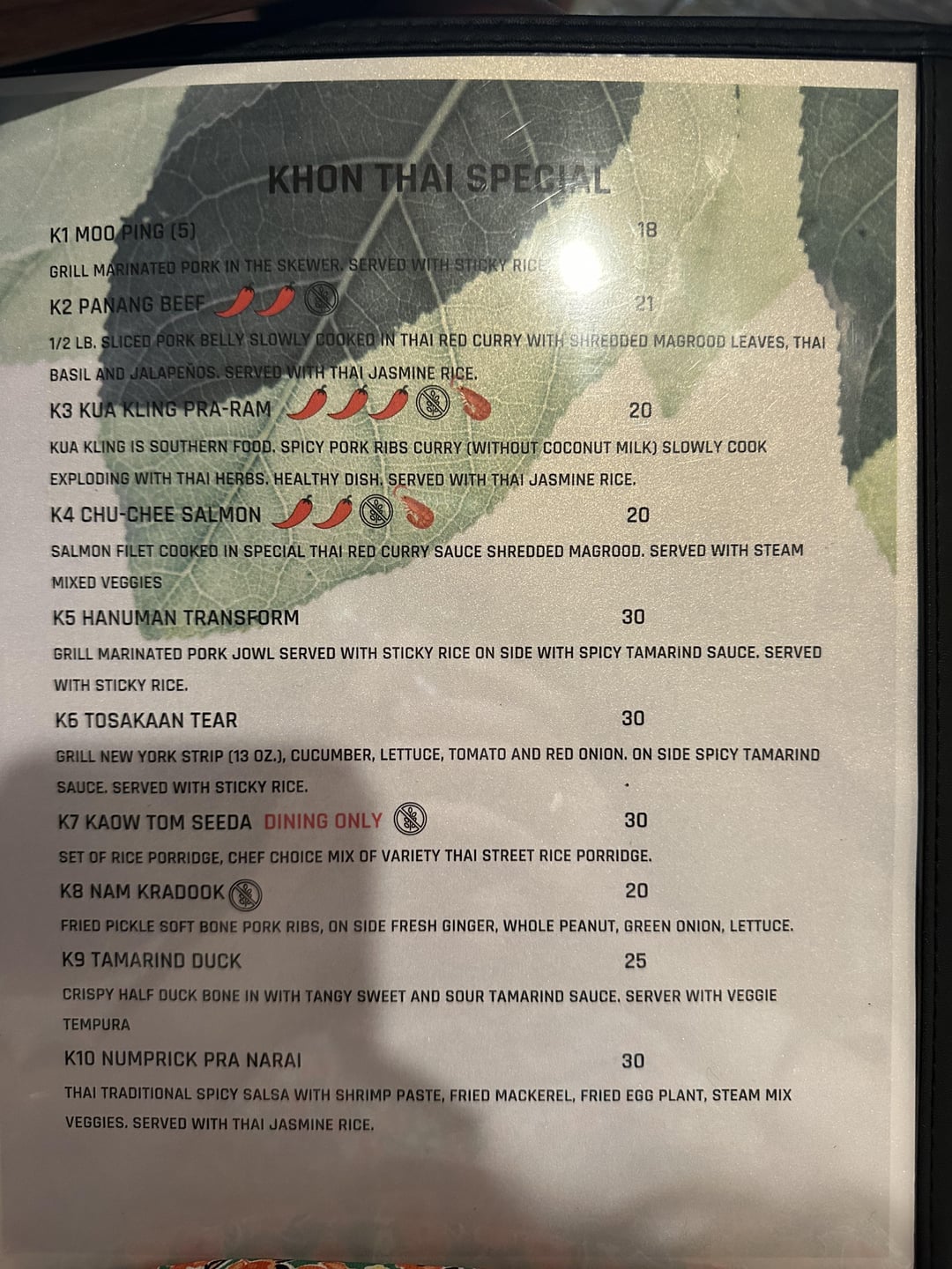 We got the K1, K5, S1, A1, and C4. plus mango sticky rice. The papaya salad was really good, they have a Thai version and American version that is less fishy but we got the Thai version. We also enjoyed their mooping and thought the Jungle curry was decent but could be even spicier. The K5 with the pork jowl was so good and a really large platter portion enough to share. I would definitely order that one again. To give context though I like Thai food so spicy that it makes you cry so i’m probably biased. Being their second day there were some hiccups, the sticky rice for one of the dishes was a tad too hard but the other was cooked perfectly. It’s only their second day so i expect them to fine tune some things but I have high hopes for the next couple of weeks as I’m a huge fan of their other concept Seeda. Service was great and it’s clear it’s a family owned business , very friendly people.
