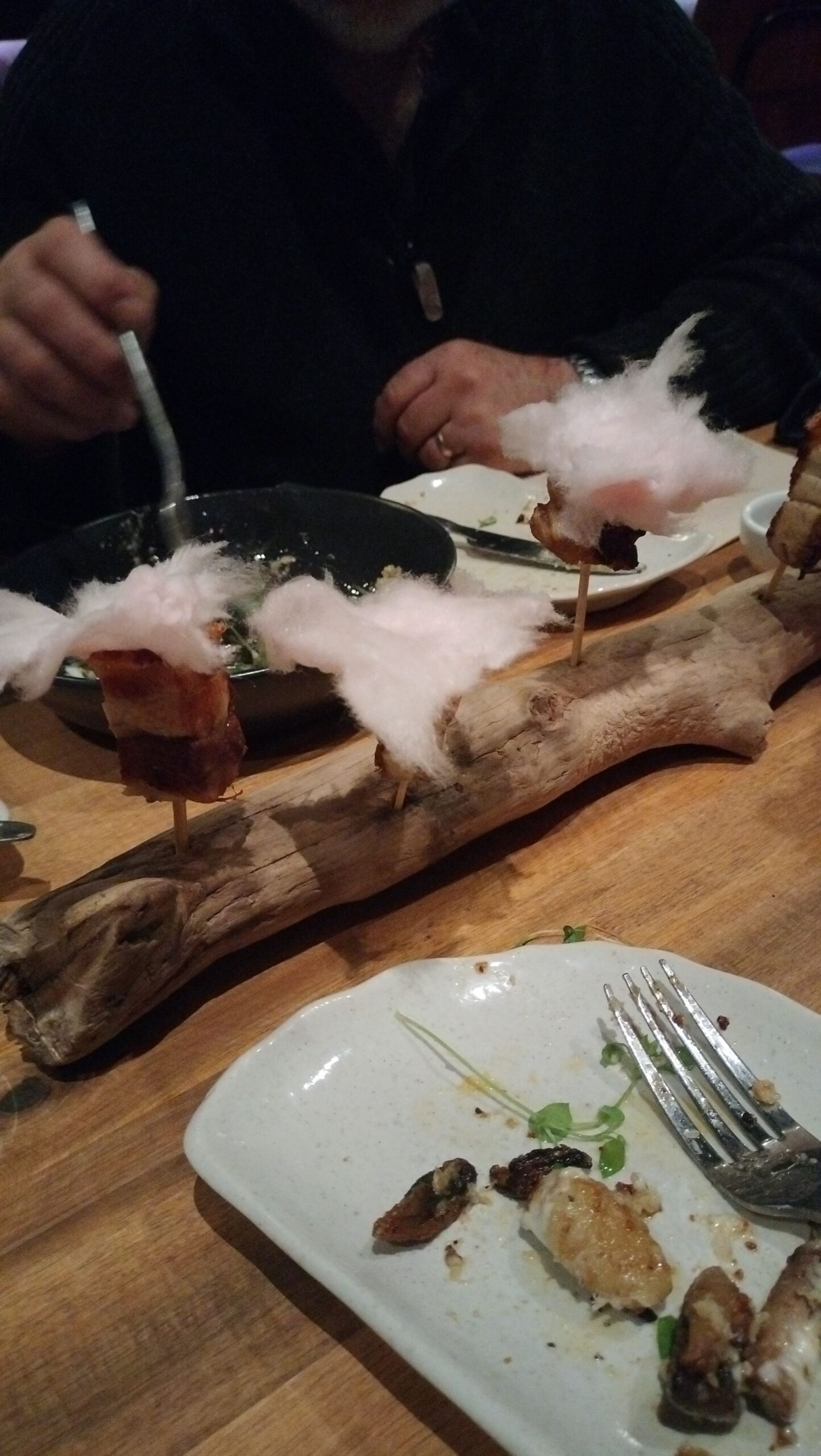I’m far more offended by the cotton candy on the pork than I am by the log.