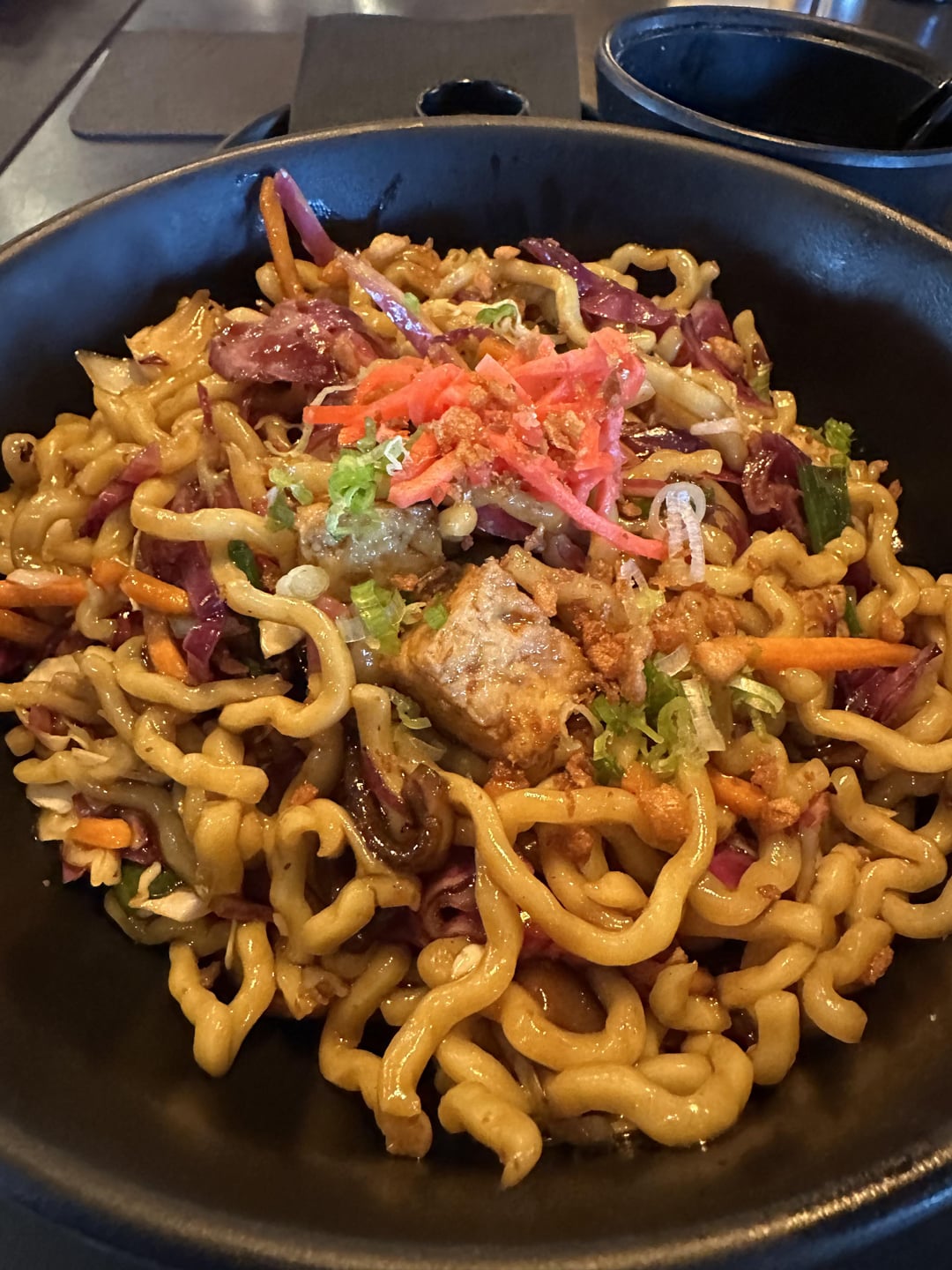 Also, got miso soup, the yakisoba noodles (very filling, two could split), an off-menu key lime cheesecake and an $8 house sake.