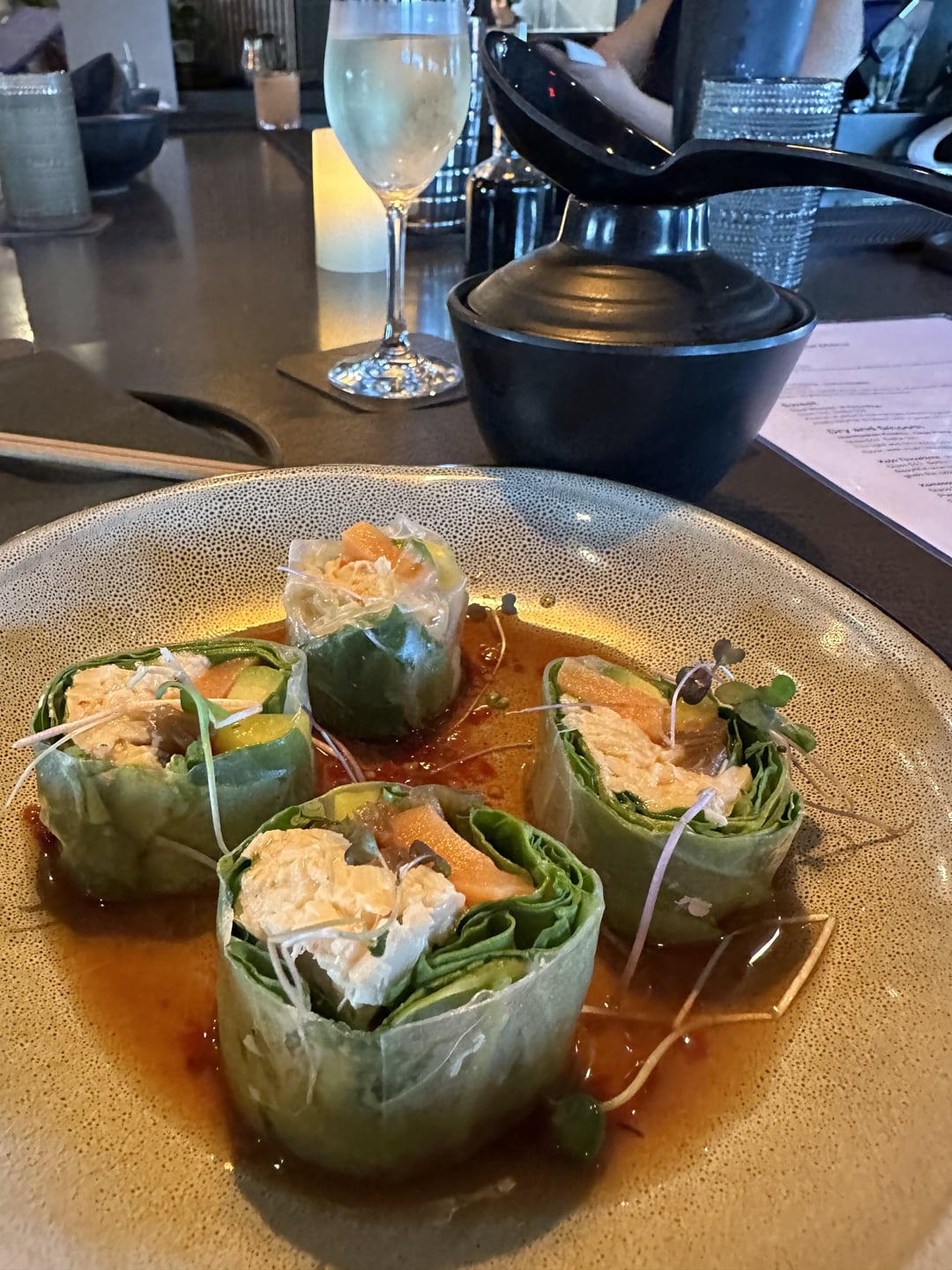 Didn’t want to rack up a big bill (so I thought), so the only roll I ordered was an appetizer spicy ponzu spring roll.