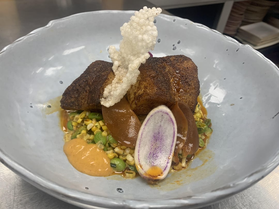 Blackened Grouper/Corn and Adamame Succotash/Carolina BBQ/Chorizo Oil/Malt Vin. Powder Tapioca Crisp. by Spyblitz 1 Comment cookinthescuppers 2 years ago Sounds like an incredible blend on flavours and textures. I love the corn succotash idea.Write A CommentYou must be logged in to post a comment.