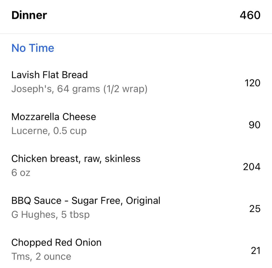 My favorite flatbread BBQ chicken pizza! 480 calby chewbaccasmomm 1 Comment chewbaccasmomm 3 years ago Oops! 460* calWrite A CommentYou must be logged in to post a comment.