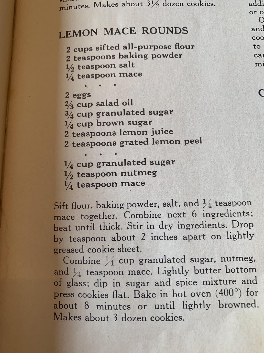 These were both SO good but the lemon mace rounds were my favorite. For ‘salad oil’ I used olive oil- when I tasted the dough I nearly threw it out but thankfully when they were baked the bitterness totally went away and they became addictive! I brought them to visit my fiancés family and they were a hit with all of them as well.