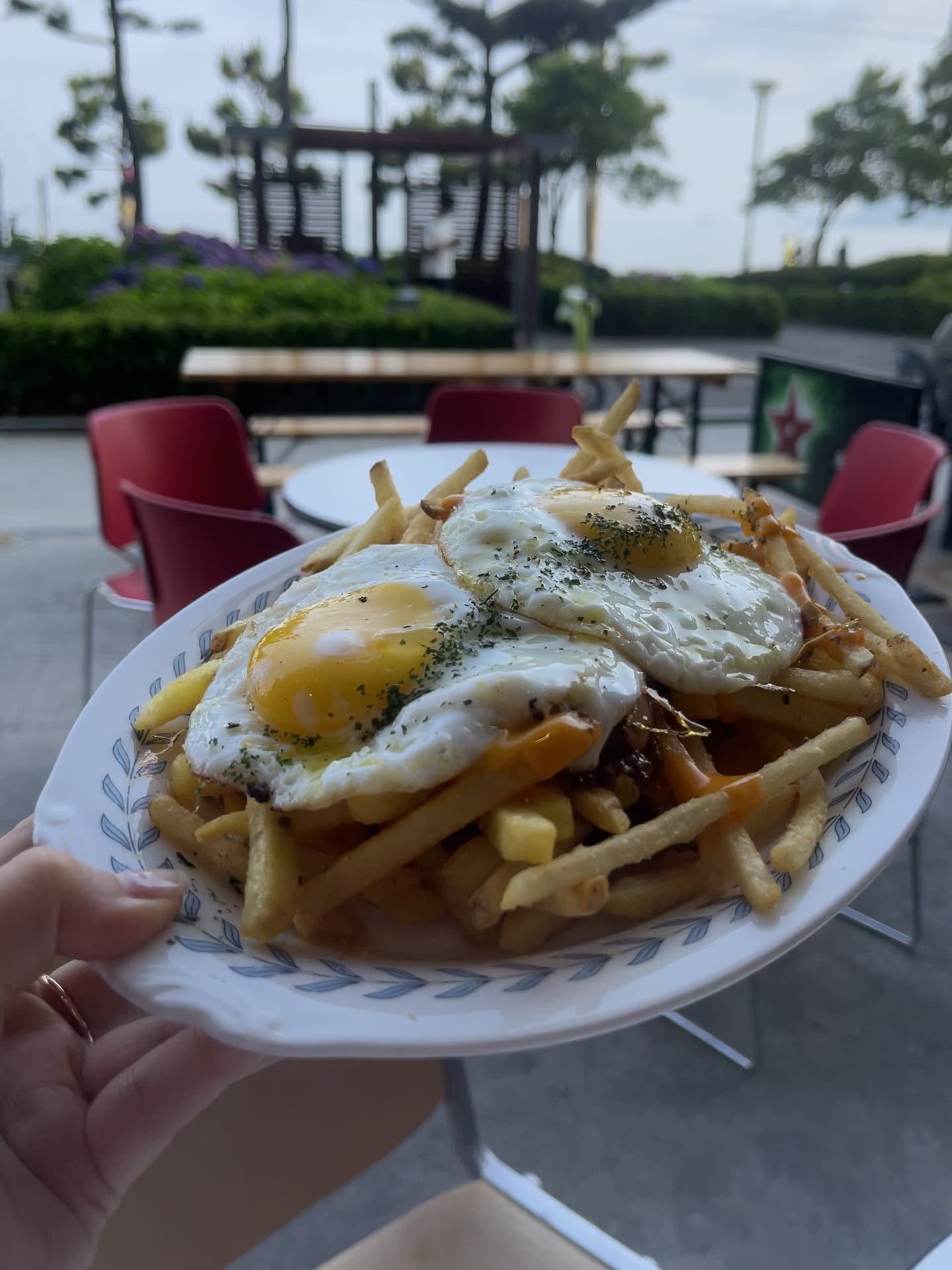 You said you ordered two types of pasta and beer but that’s fries in your video