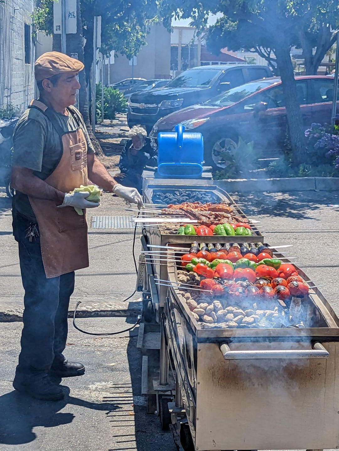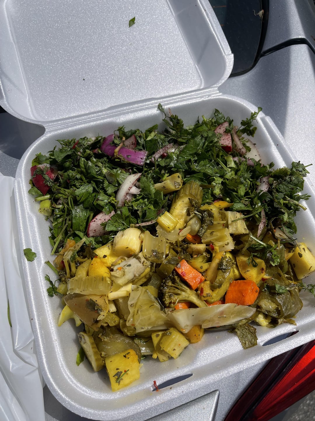 They only do this on the weekends and it’s totally worth it. You order in the grocery store and take your receipt to the guys on the grill. Lamb, beef, and heart skewers. Tons of pickles and veggies. It’s a really fun vibe, there’s a few tables out but we just ate on our car. They play music and hand out cucumbers while you wait. The most delicious meat I’ve had in a while. The bread that soaks up the juices under the meat is just incredible.