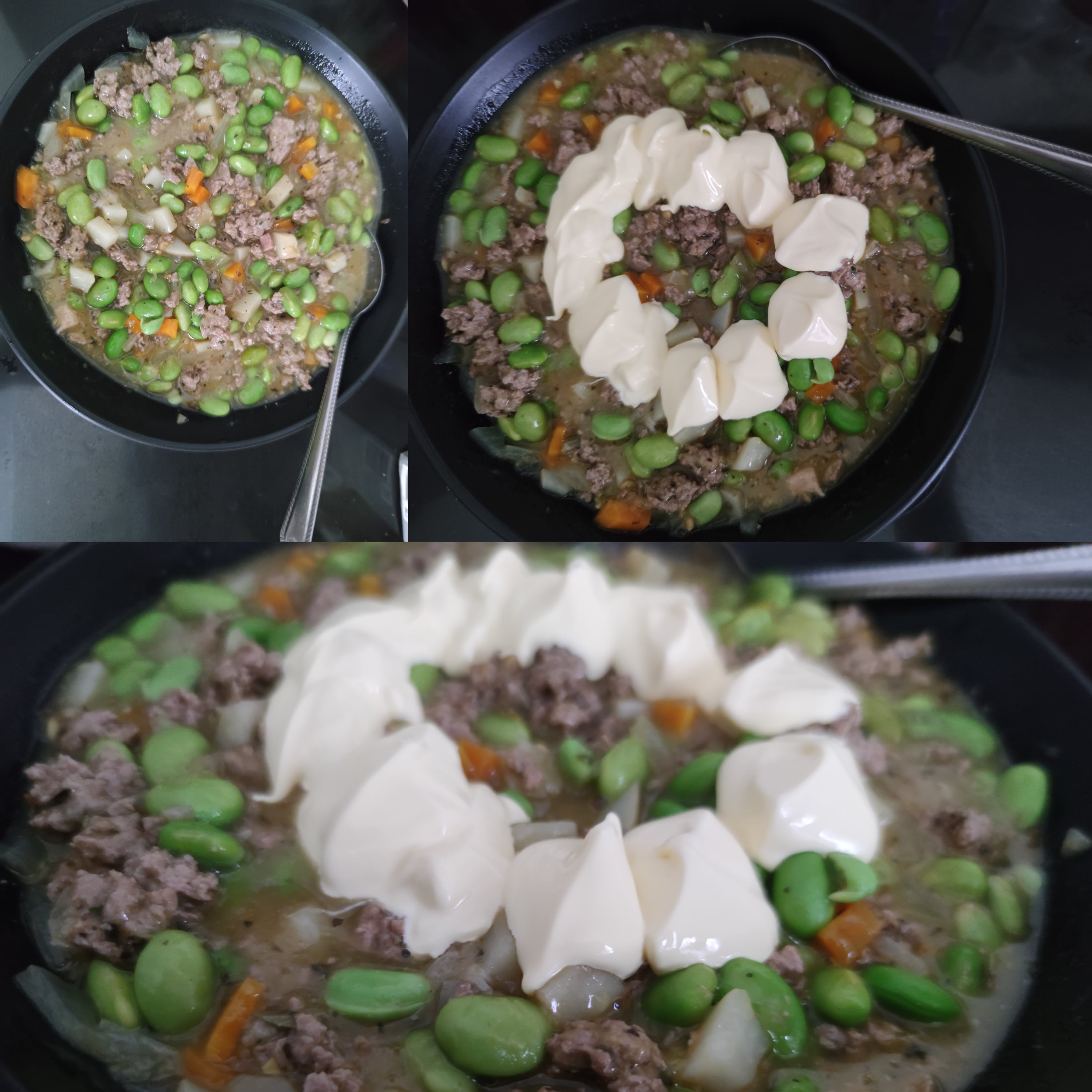 Meat turned out like patties so was then broken up into diced mince via a spatula. Edamame beans were steamed, then both got a cup and a half of the chicken soup poured over top. To serve I got a free sample 1 litre box of Knorr Hollandaise sauce and my word it’s a beautiful sauce! Had some other brands in the past that were nowhere near as nice as this. It really made the difference! Otherwise cheese sauce would also be fine. The next round of this will be with Tortilla wraps and a spicy bean mix to keep it fresh. Have a lovely day! 🥶