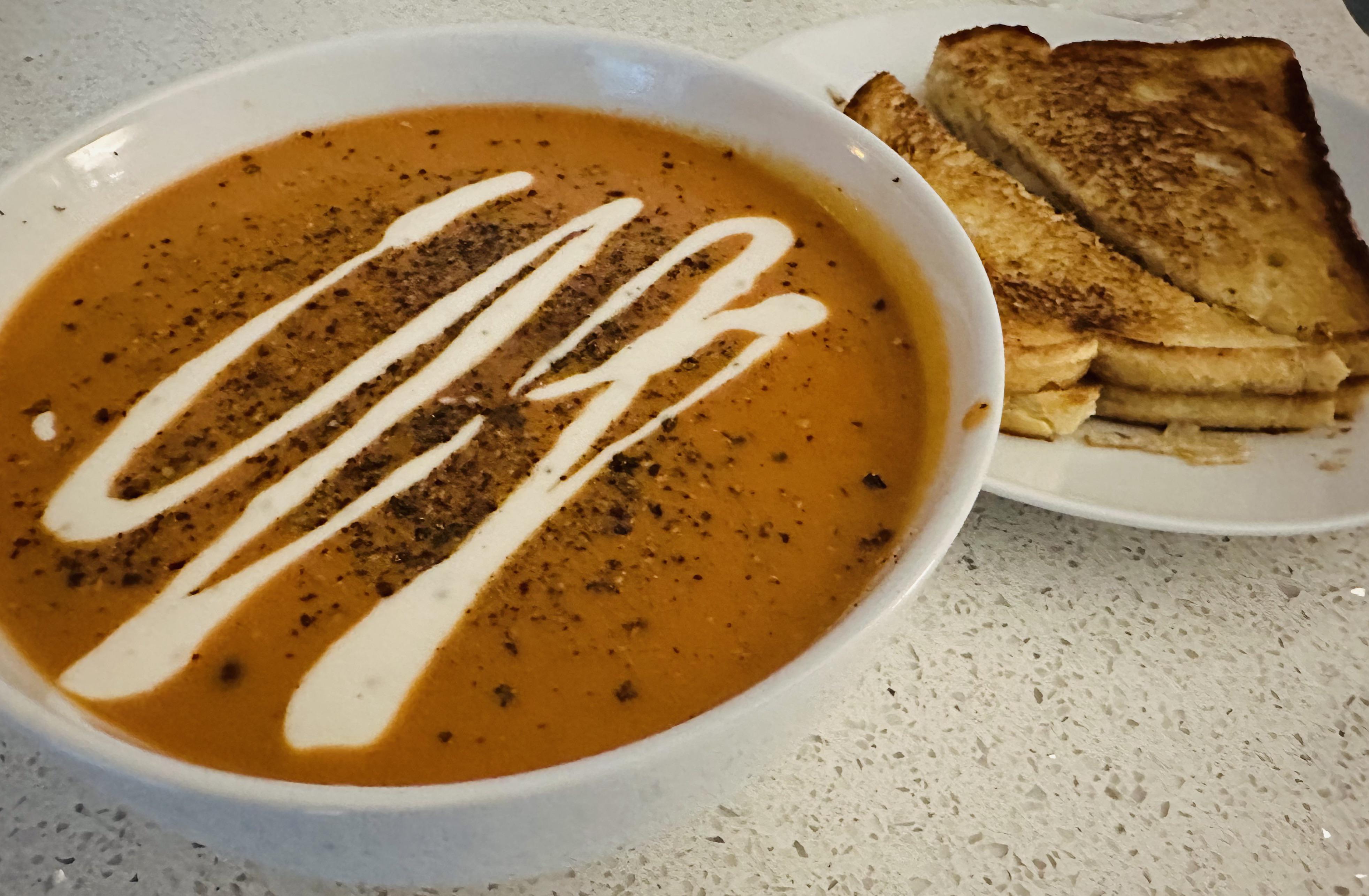 Looks a bit gourmet but all the food is from a package. Pacific Foods Tomato and Basil Soup, canned lentils, Compliments Vegan Caesar Dressing. Grilled Daiya cheese on sourdough.by Awkward-Assumption35 Write A CommentYou must be logged in to post a comment.