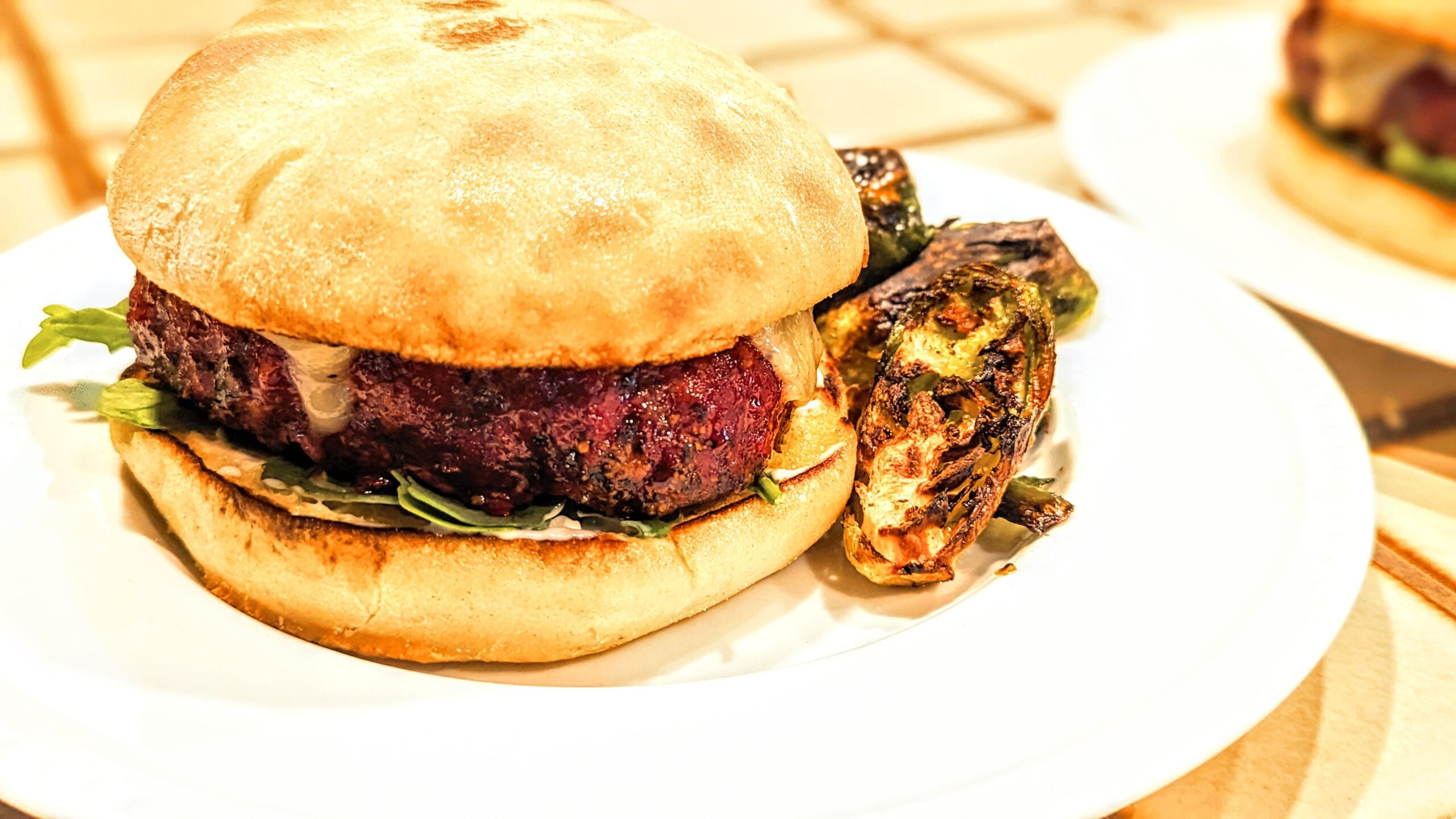 Smoked salt and pepper burger with Tillamook cracker black pepper cheese, white garlic butter and arugula on a toasted bun.by hgiwvac9 Write A CommentYou must be logged in to post a comment.