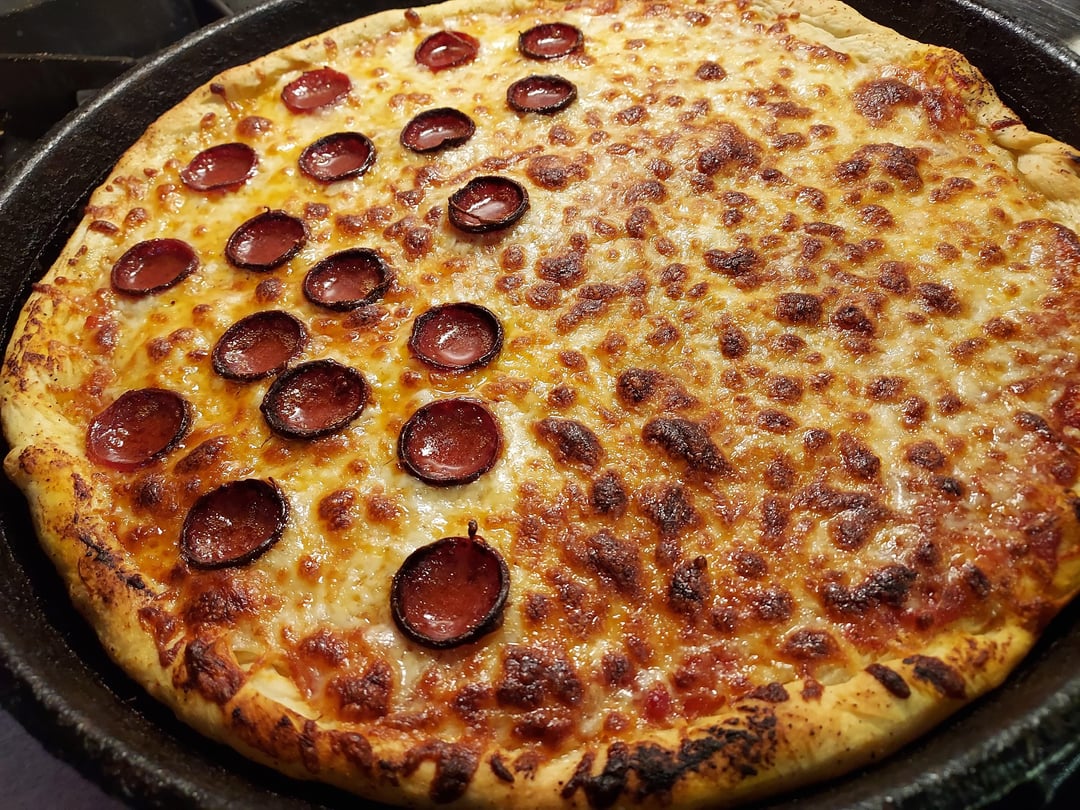 The pan makes the difference. I’ve got a deep dish one from a restaurant and it’s the best.