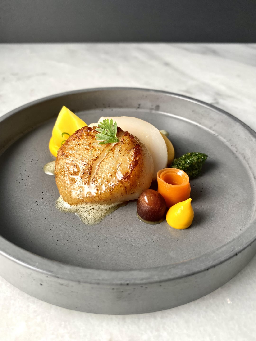 Cold smoked scallop, ginger carrot purée, confit carrot, brown butter emulsion, carrot top gremolatta by grayson_fox Write A CommentYou must be logged in to post a comment.