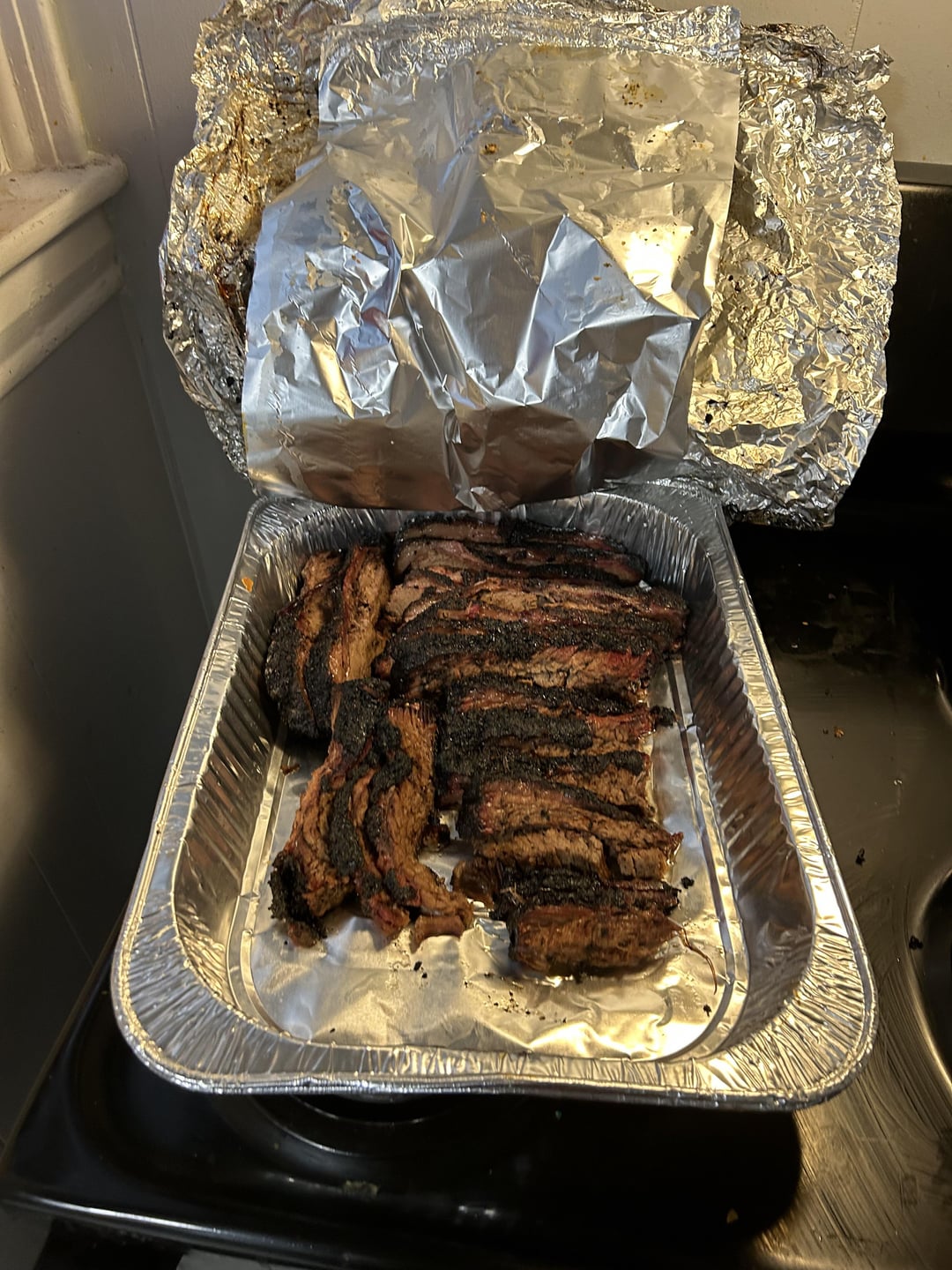 Looks a little dry there, my guy. Did you skip liquid with it during the wrapped phase? I normally pour the remaining liquid I spray onto the meat into the bag before wrapping it up, helps keep things juicy