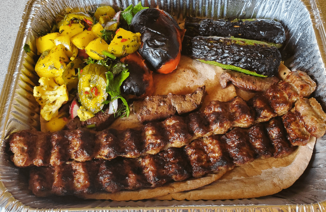 Liver kabob $9.99, ground beef kabob $18.99