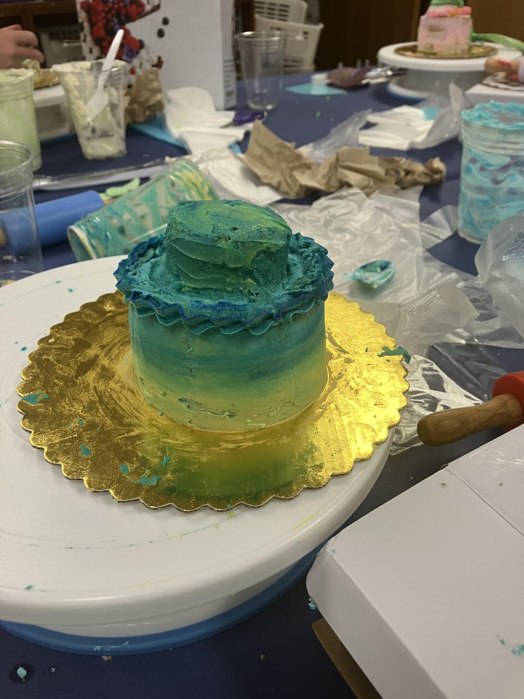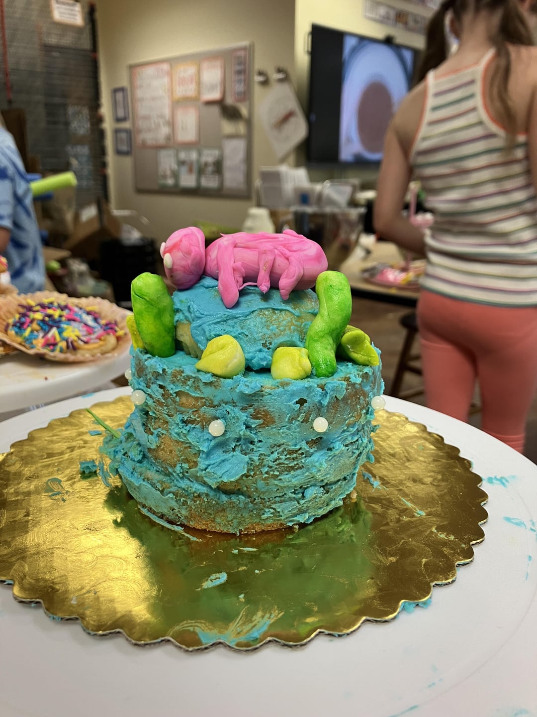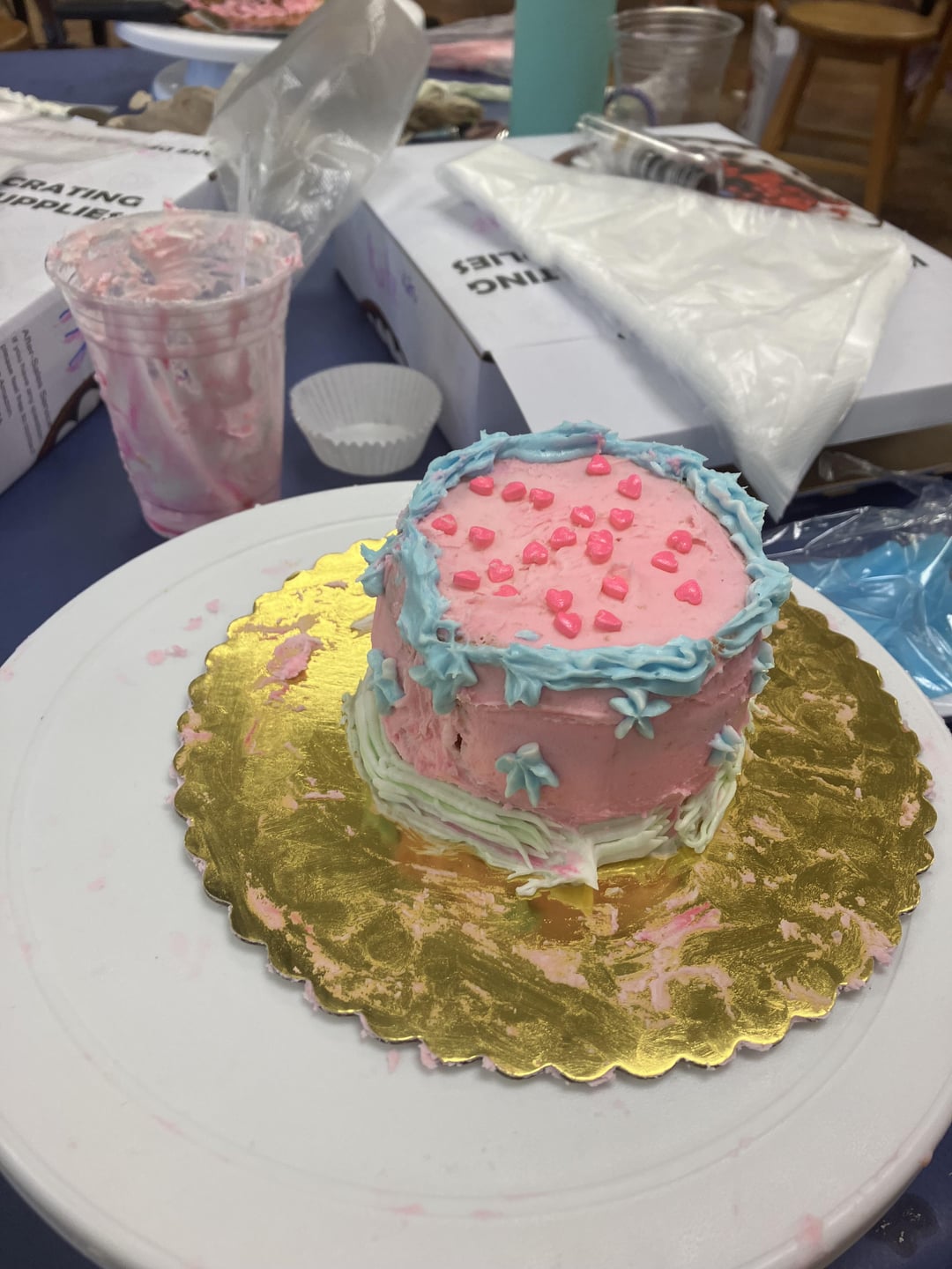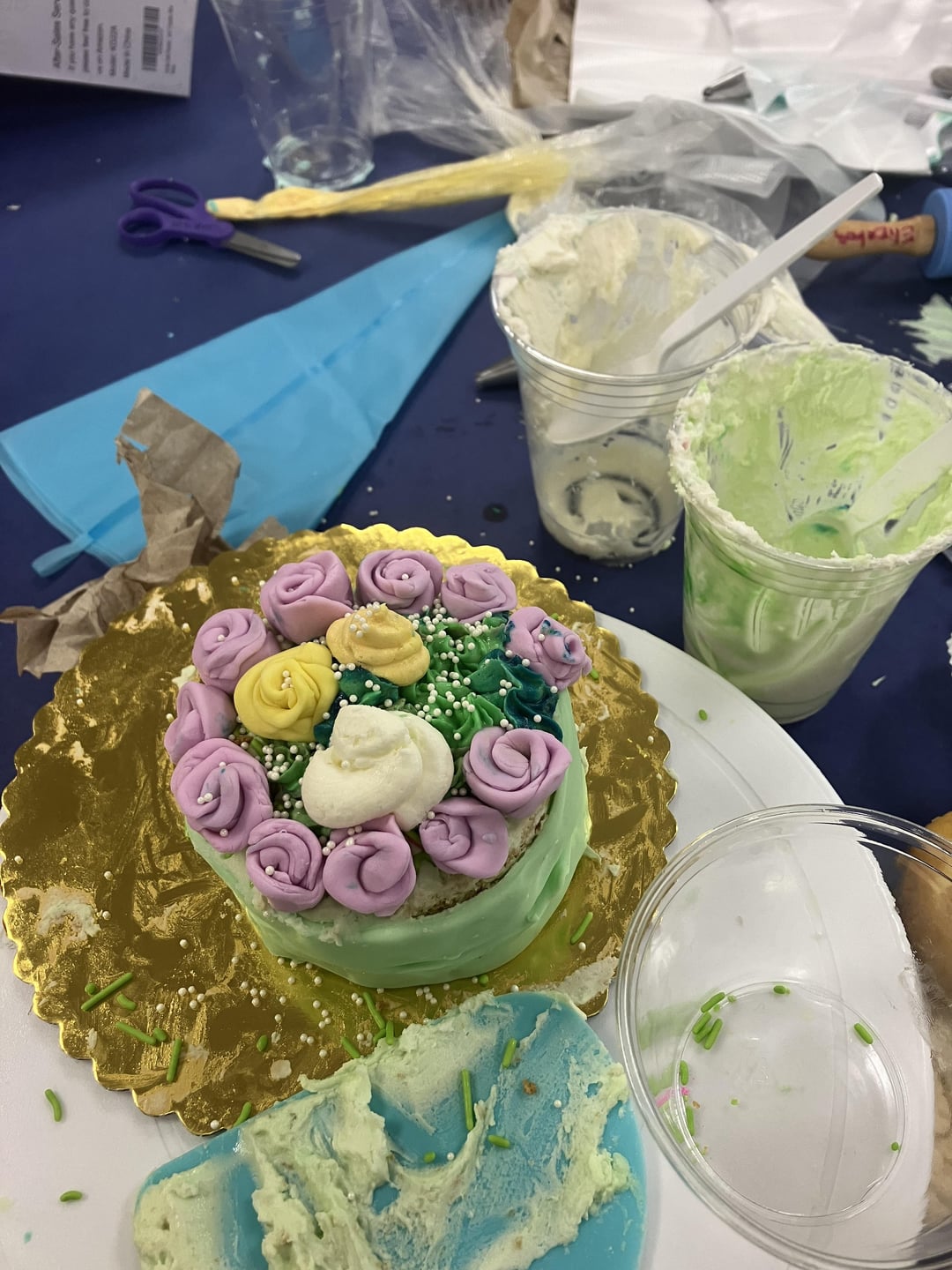 I taught a camp this week to 2nd-6th graders focused on cookie and cake decorating. Today they had free reign to decorate their own mini cake and I love how they turned out! The toilet kills me- the back is a cookie. I’m so proud and had so much fun with them all week!