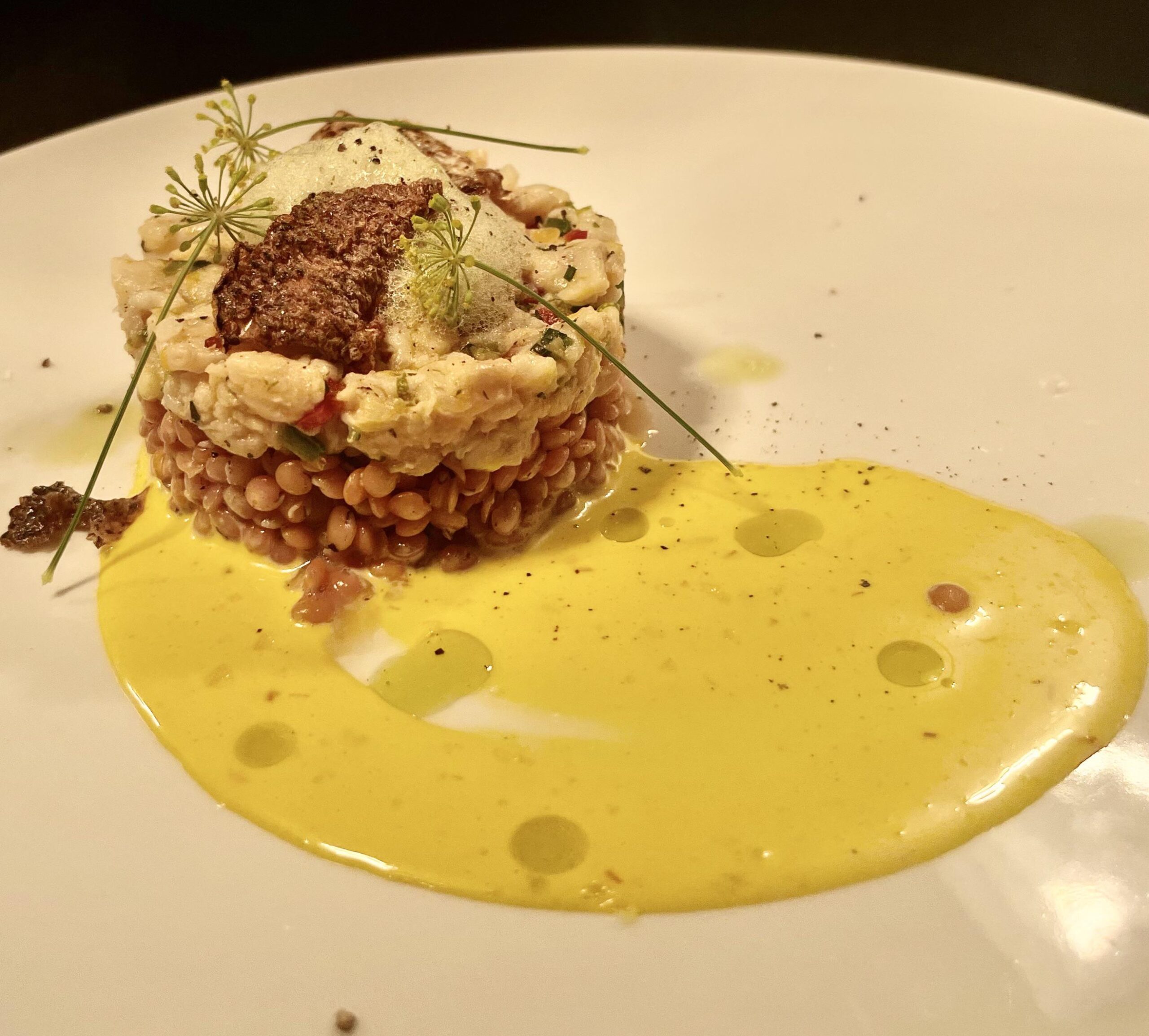 Yellowtail snapper ceviche, red lentils, saffron aioli, garden herb foam, snapper skin chicharrón, dill flower, ramp oilby MrStubbs69 Write A CommentYou must be logged in to post a comment.