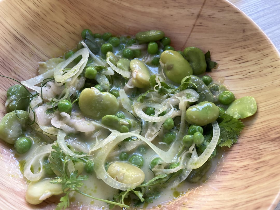 dish one: fava and peas green curry ceviche ($14)