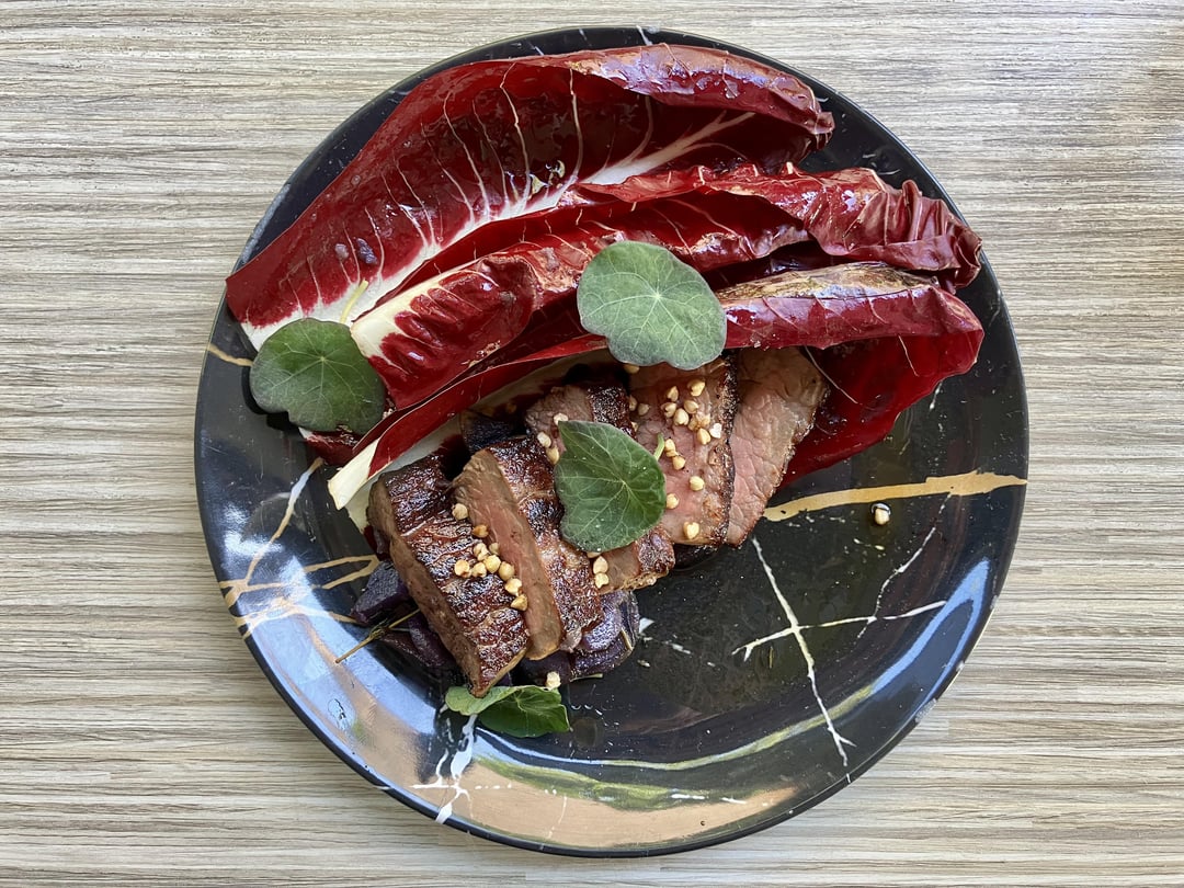 dish three: new york steak with purple potatoes and radicchios ($39)