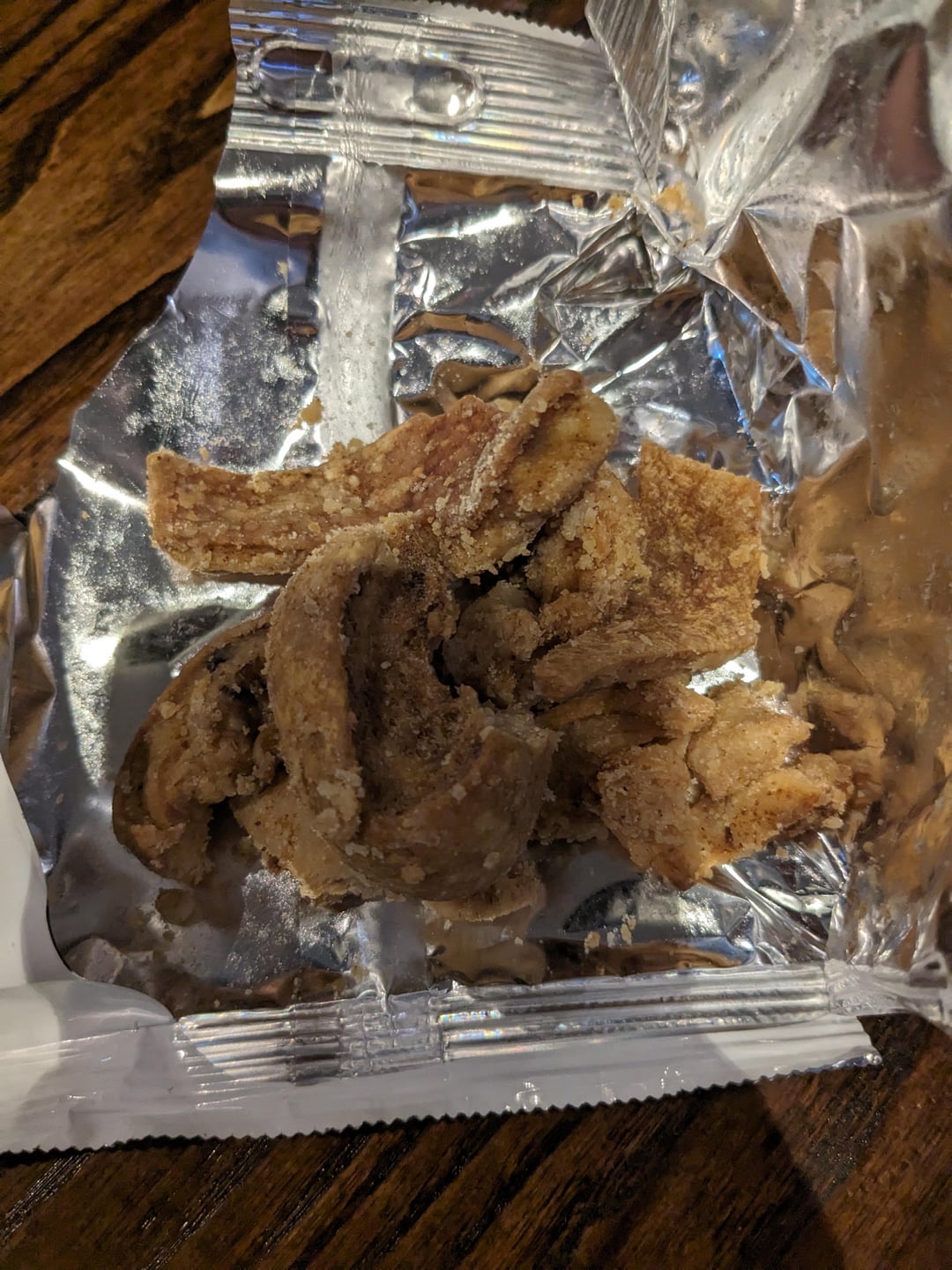 Best snack ever. Having had this bad boy for nearly 50 years, my own when I make a pork roast is the best crisp ever. Many packets have odd soggy one which are not good.