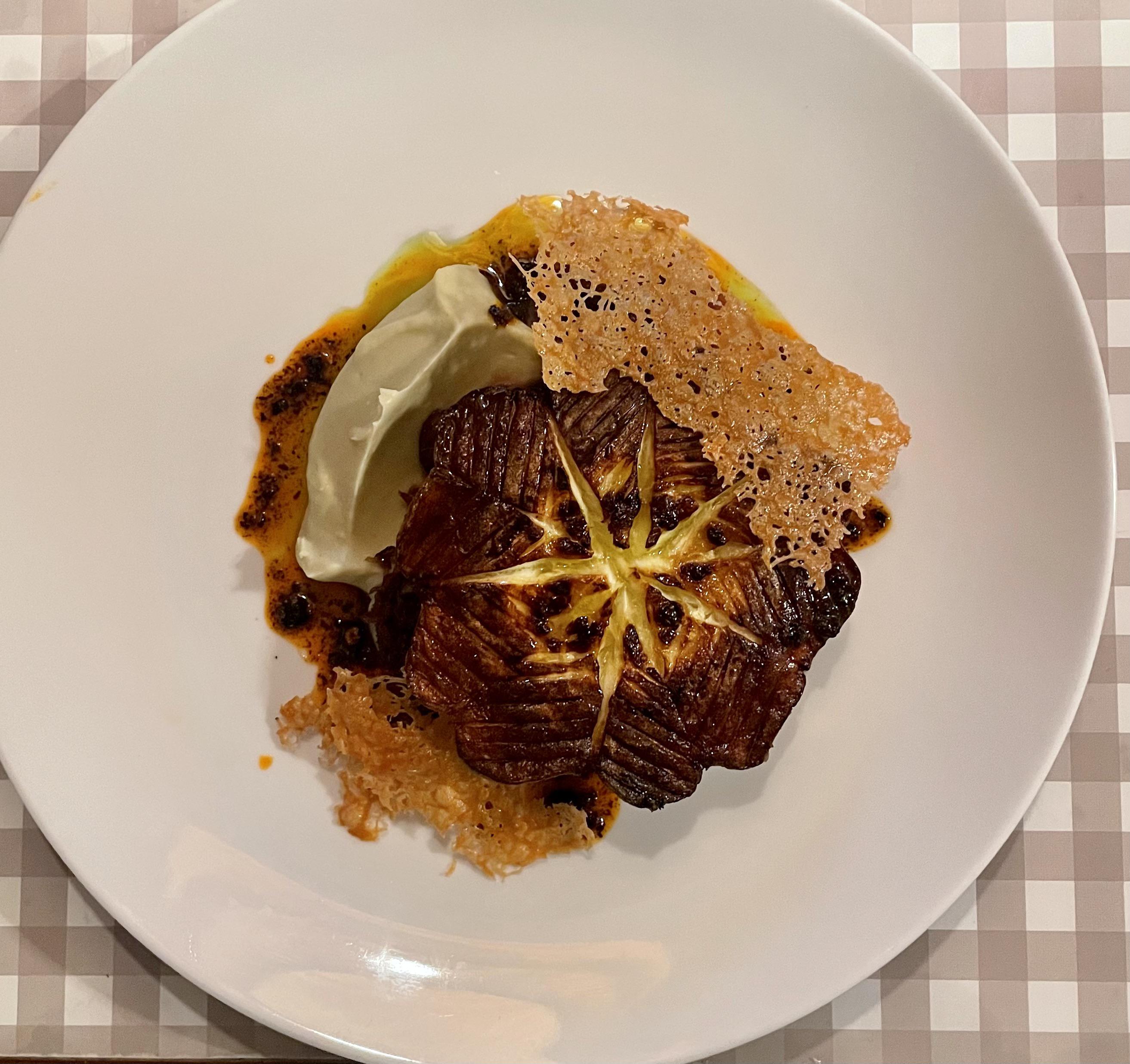 Roasted squash, cauliflower purée, braised radicchio, salsa macha, manchego crisp