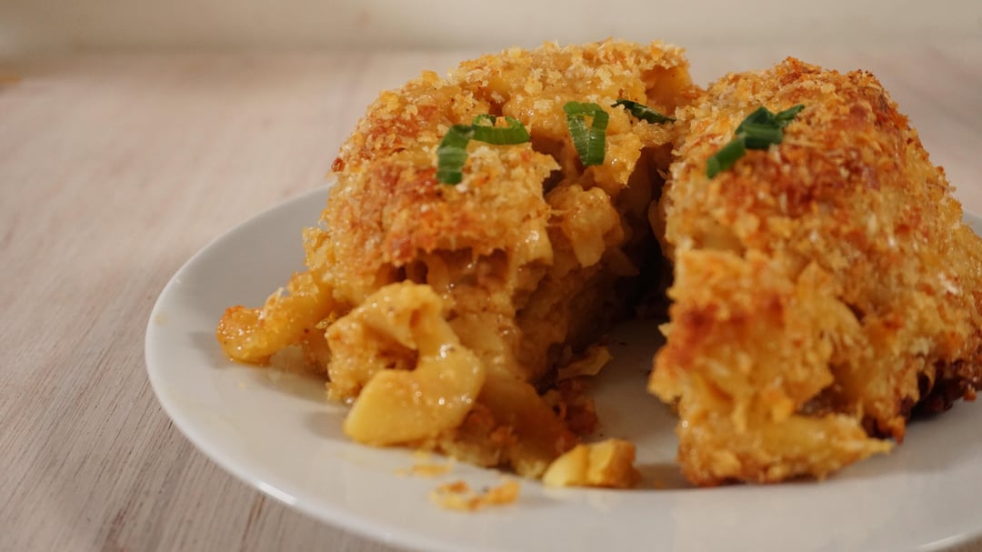 Baked Mac and Cheese – Freshly grated cheddar, gruyere and manchego cheeses in a dark roux with spices and chipotle peppers for a hint of heat. With a freshly grated parmesan cheese and panko breadcrumb crust – 16