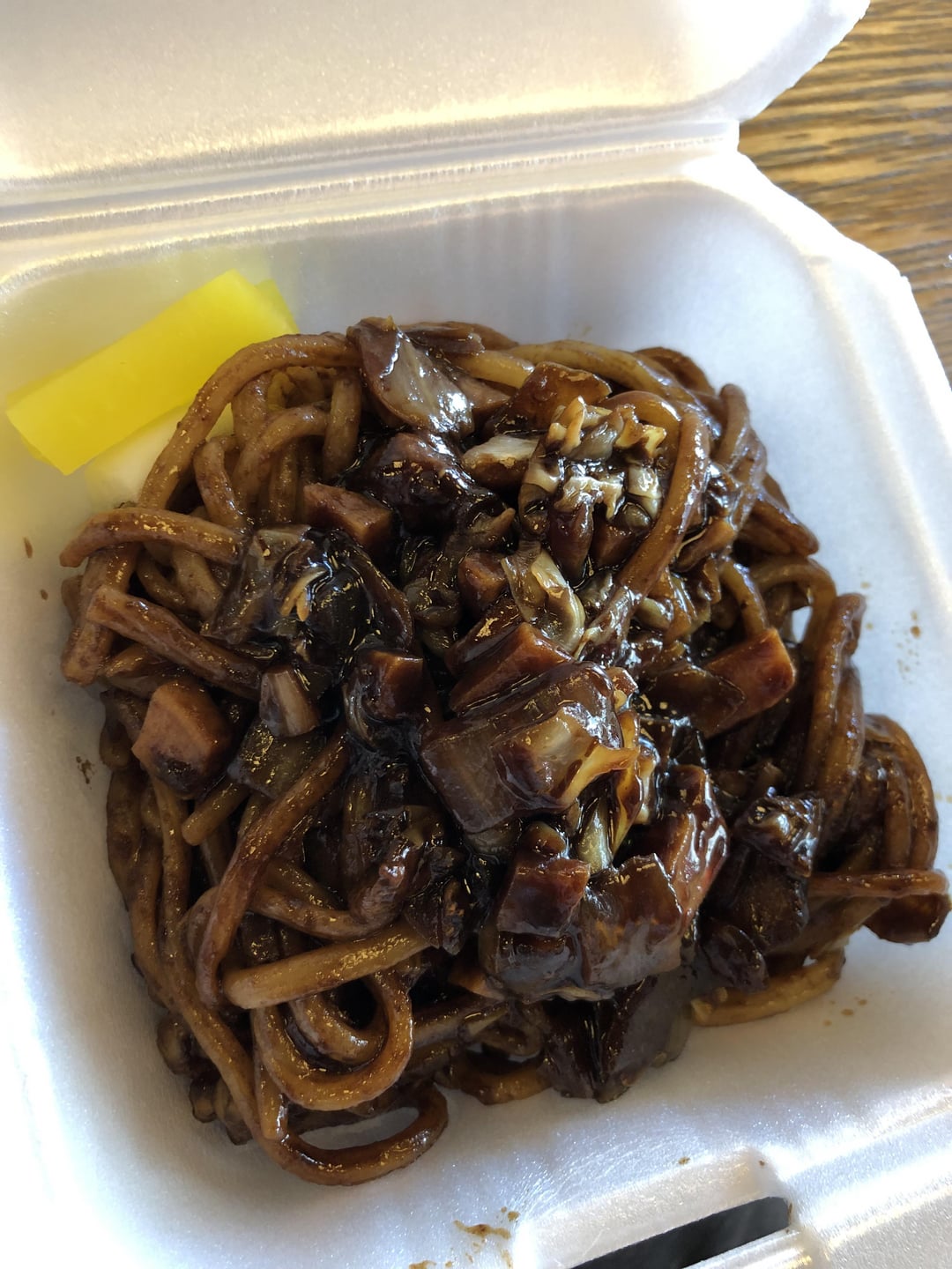 Absolutely love this 짬뽕& 짜장면 mix, red broth is so rich and quite spicy, pork bites from black bean sauce is also much flavorful than other places I have tried