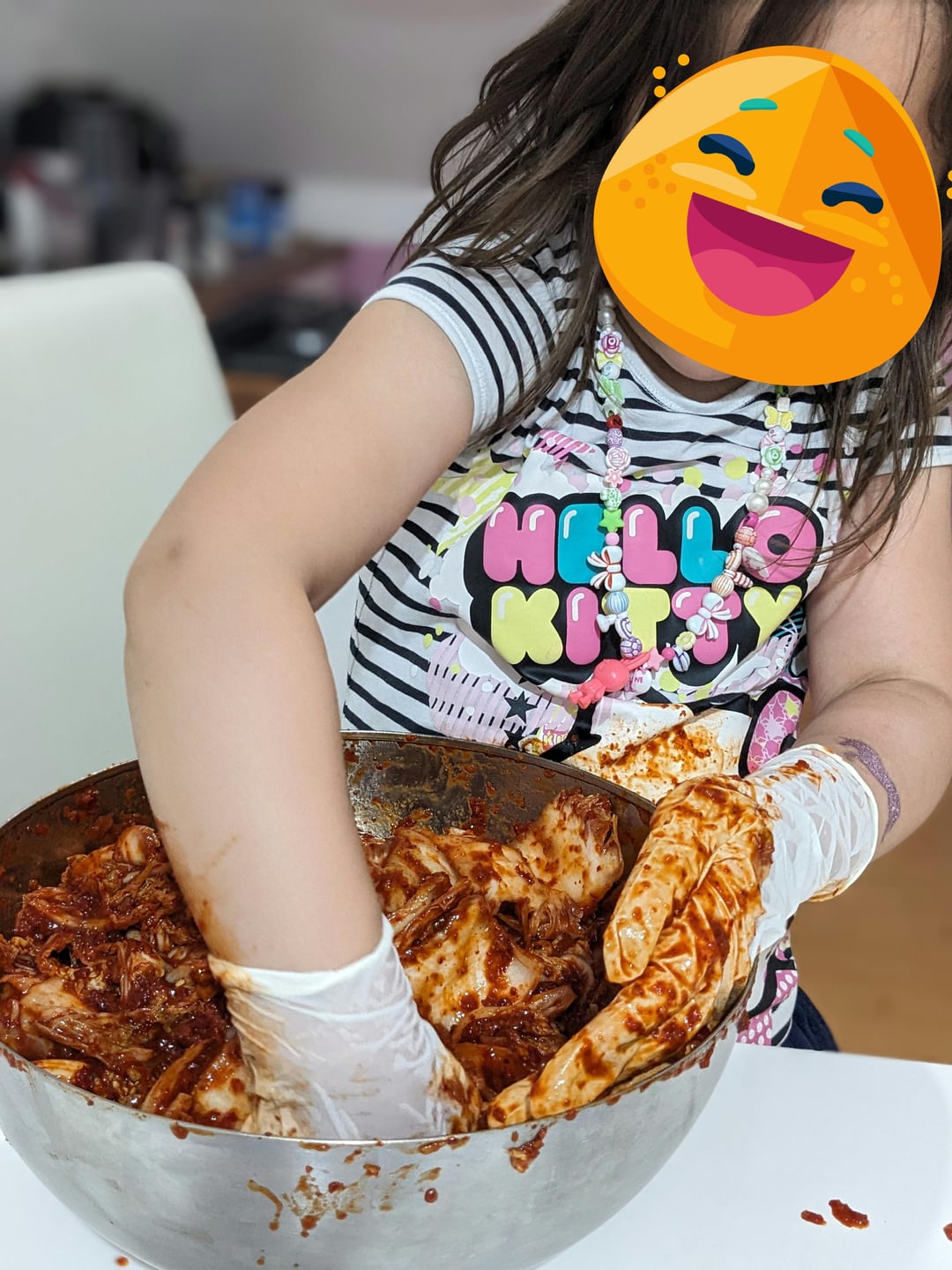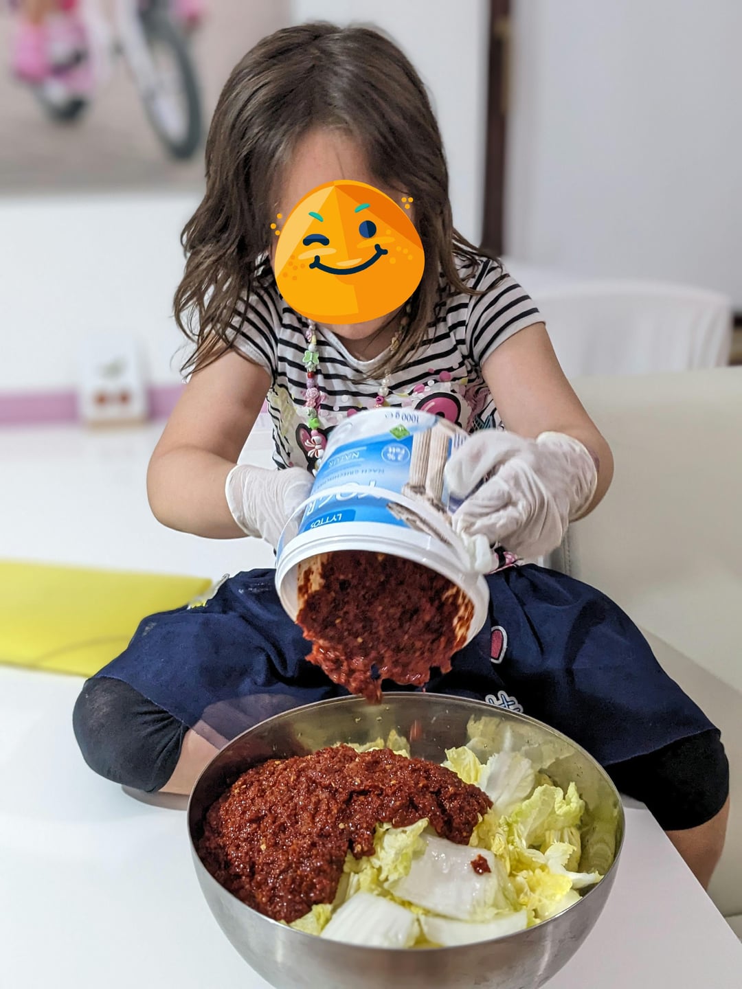 She has loads of fun making Kimchi.
