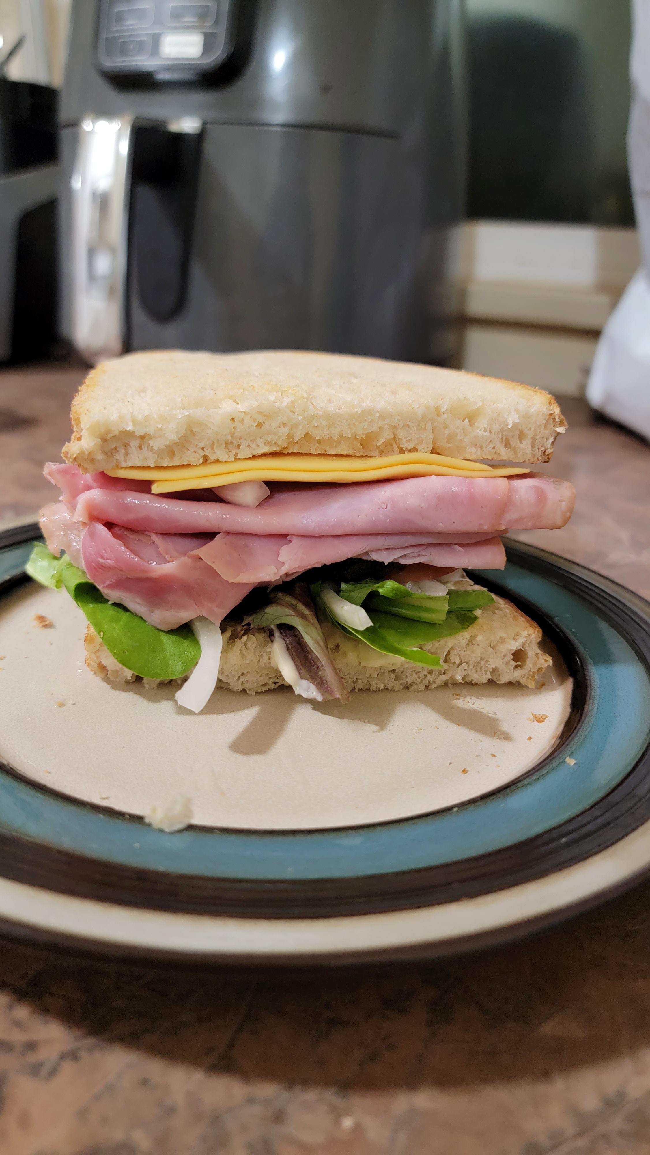 (top to bottom) ghost pepper mustard, American cheese, ham, tomato onion 50/50 mix mayoby poop-pee-farty-poo Write A CommentYou must be logged in to post a comment.