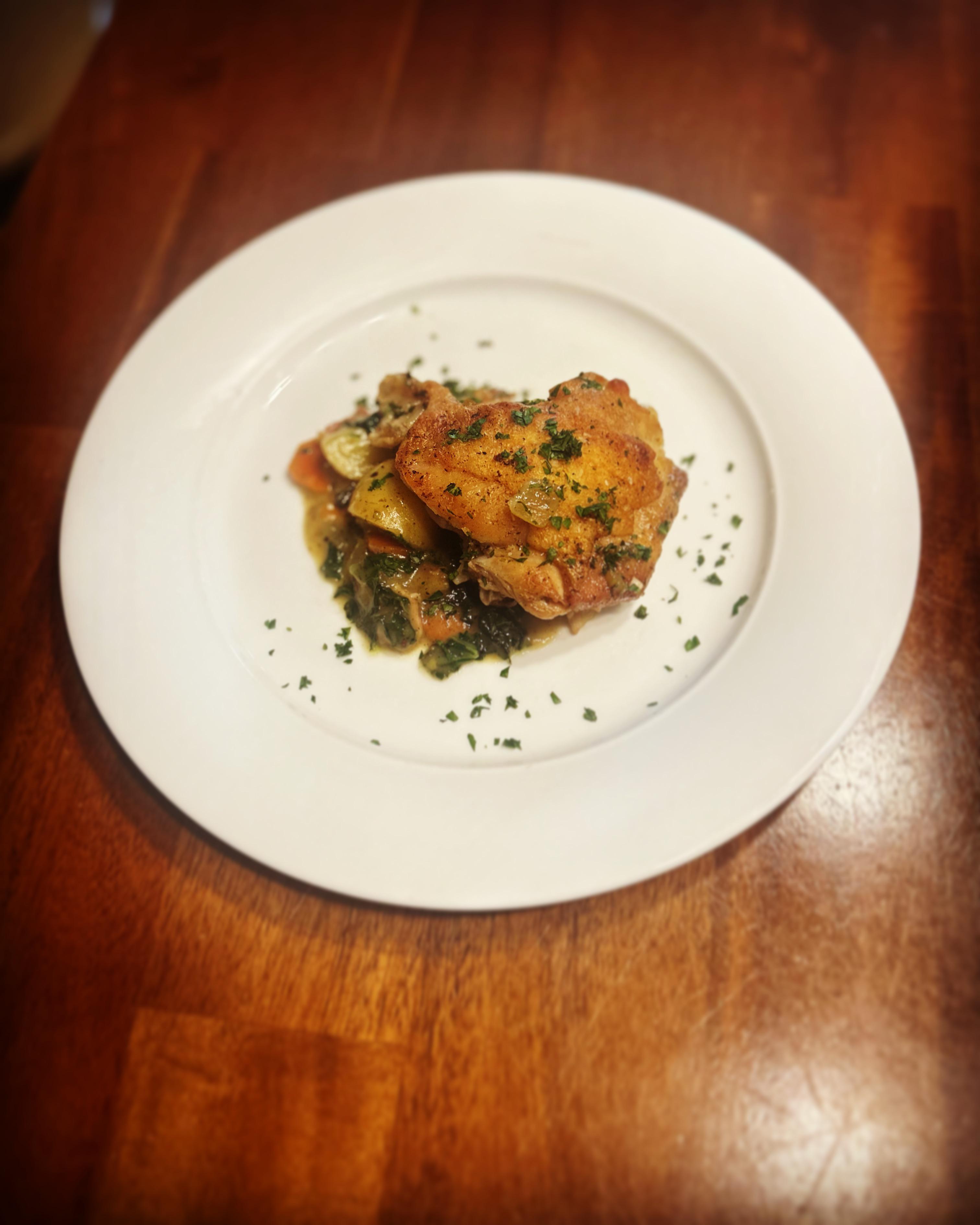Home made plate – Braised Chicken Thigh with mushrooms, Mirepoix, Potato, Kale, and Pan Sauceby WoodpileRabbit Write A CommentYou must be logged in to post a comment.