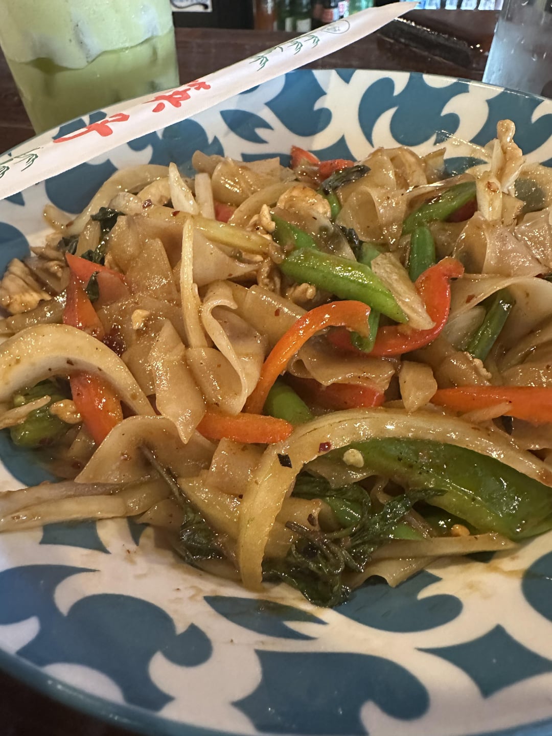 Pad Kee Mao is my go to at most Thai places. The noodles were firm and spicy, some crisp green beans stood out. Very satisfying, took almost half of what was left to go.