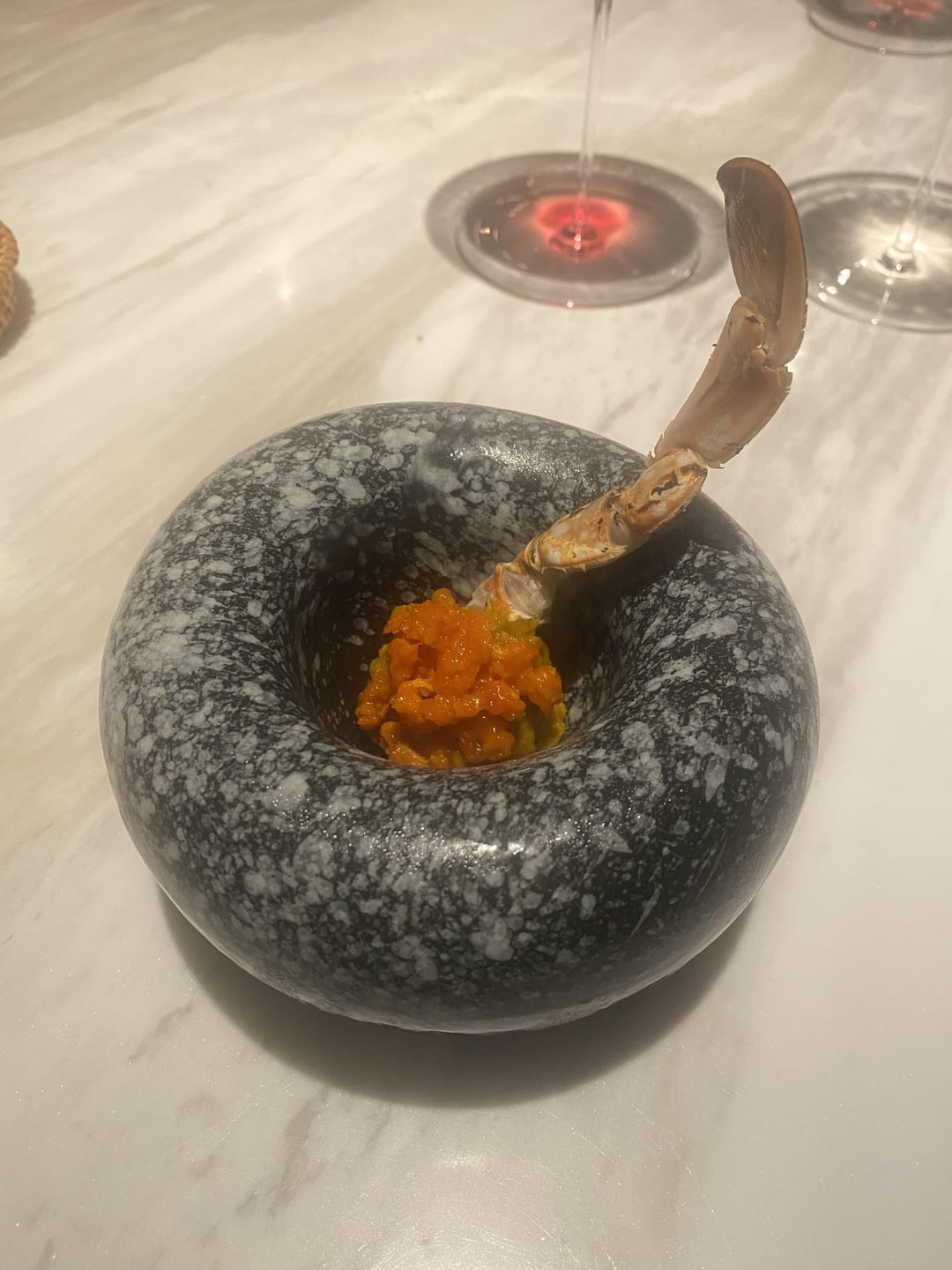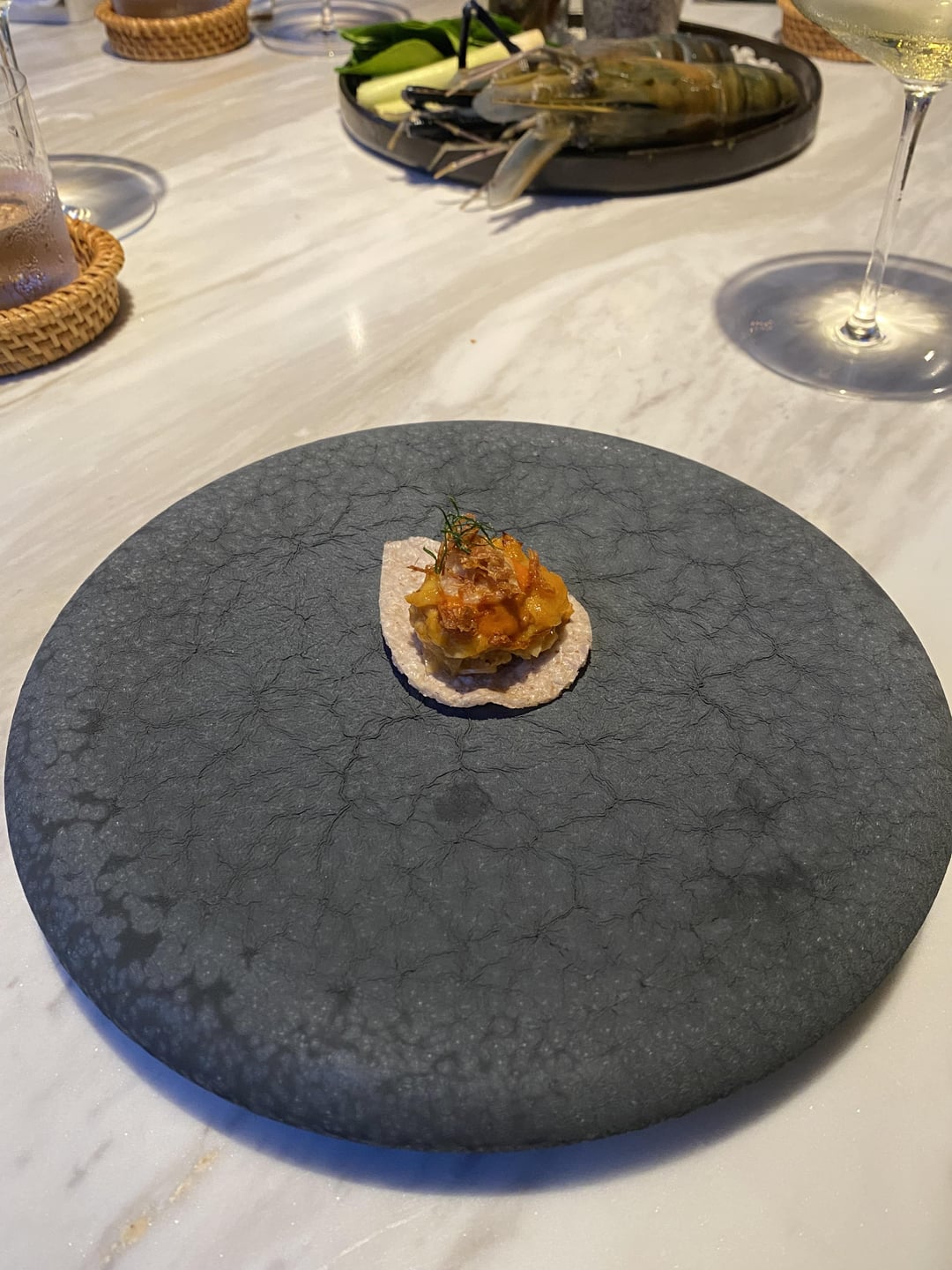 We fought through the notorious Bangkok traffic for our 6 pm reservation. We were seated promptly upstair and were presented with the menu. Our waiter came by to confirm dietary restrictions and asked how spicy we wanted our food. A few of us were more brave than others and opted for normal spice. Throughout the meal, each course was tailored based on our preference, which was a nice touch. A quick note that milder spice here was still spicy (at least for us).