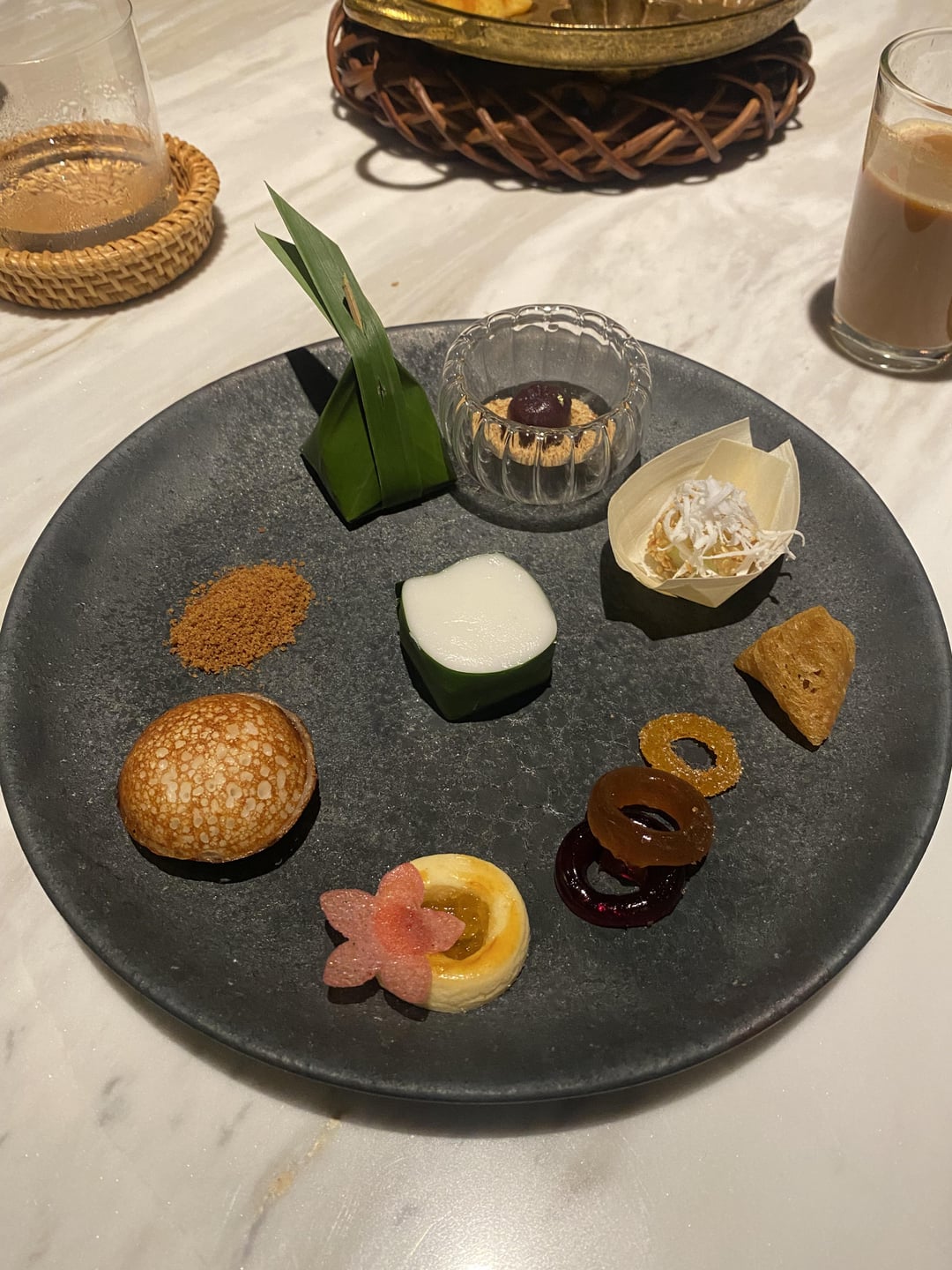 16. Petit four: We thought we were done, but the service team wheeled out a cart full of little bites. Our waiter asked which one we prefer but encouraged us to take everything. As full as we were, we complied. Little bites of Thai dessert. It was delightful.