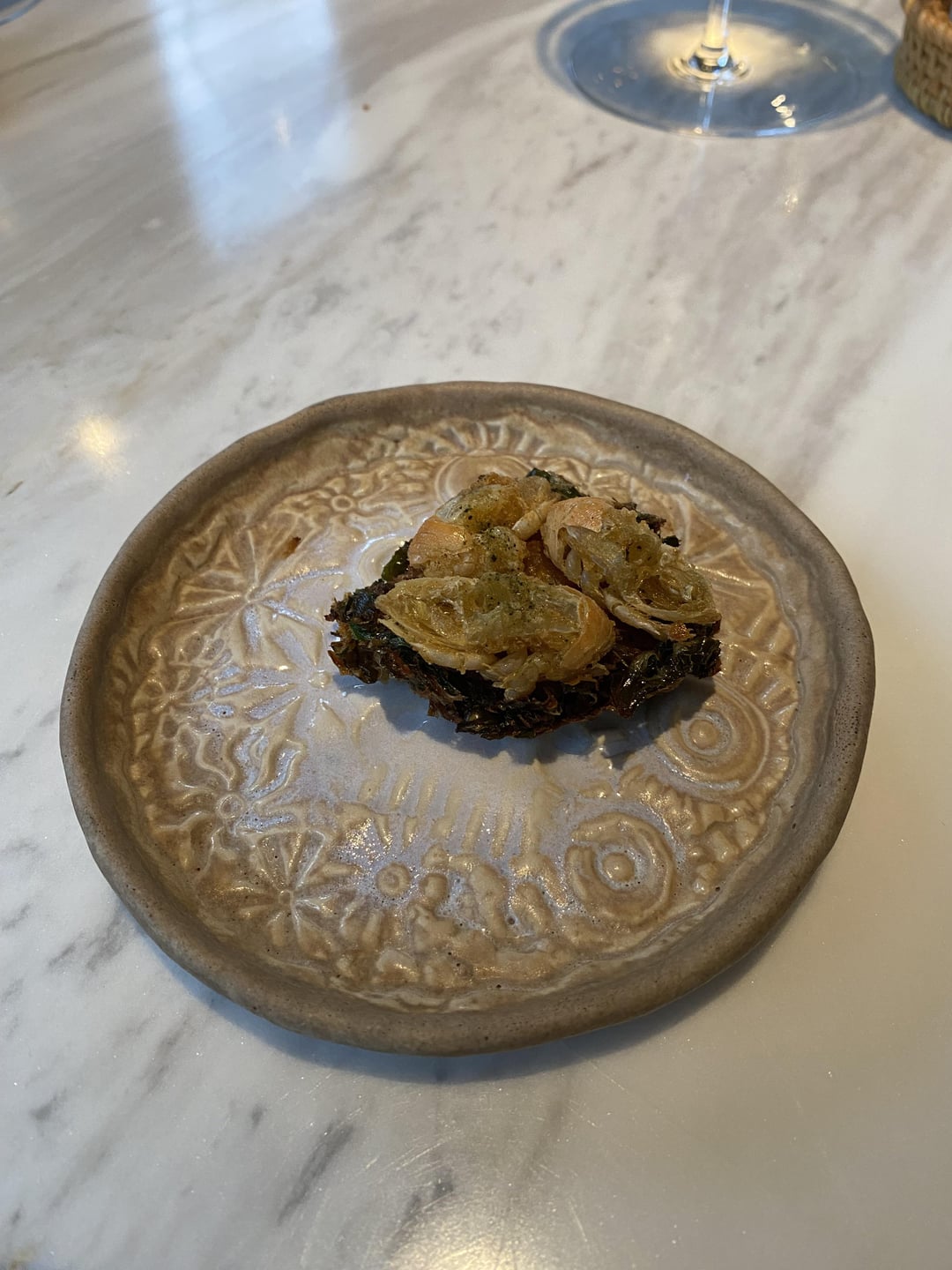 2. The beach: Sand mole crab/seaweed powder. This was delightful. Crunchy, salty.