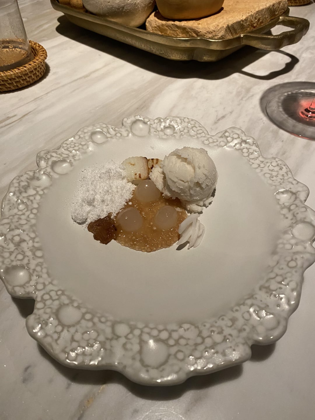 13. Sago boiled in young coconut water, longan ice-cream: a great first dessert. Not too sweet but a cooling break in the meal.