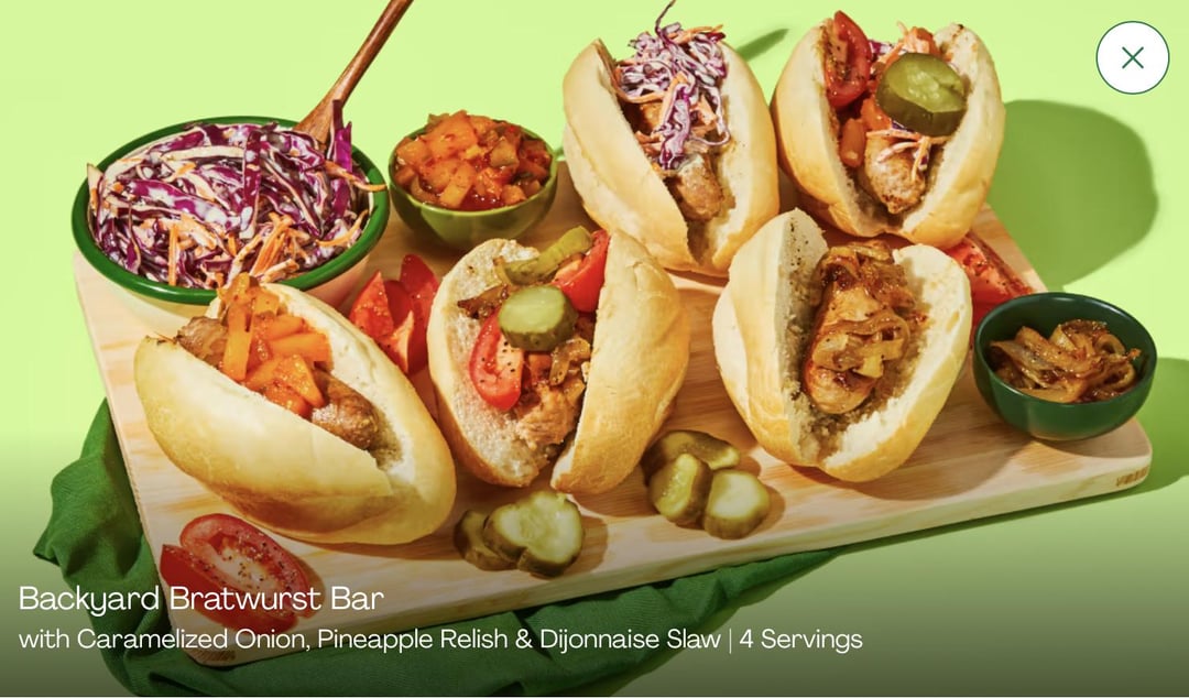 I had some credits to use so I got 2 regulars meals plus this for this past week. There were 6 Bratwursts and buns in total. This was pretty good. The only real problem I had was that it took awhile to cook down the relish. I don’t know whether that was because I was using a small 8” plan vs a bigger medium pan or something else. I skipped making the caramelized onion. I did take a picture of 2 Bratwursts with buns, but I only ended up eating one and most but not all of the slaw on the plate; it definitely was filling. I will likely get 6 full meals out of this (strangely, the instructions indicated 4 servings)