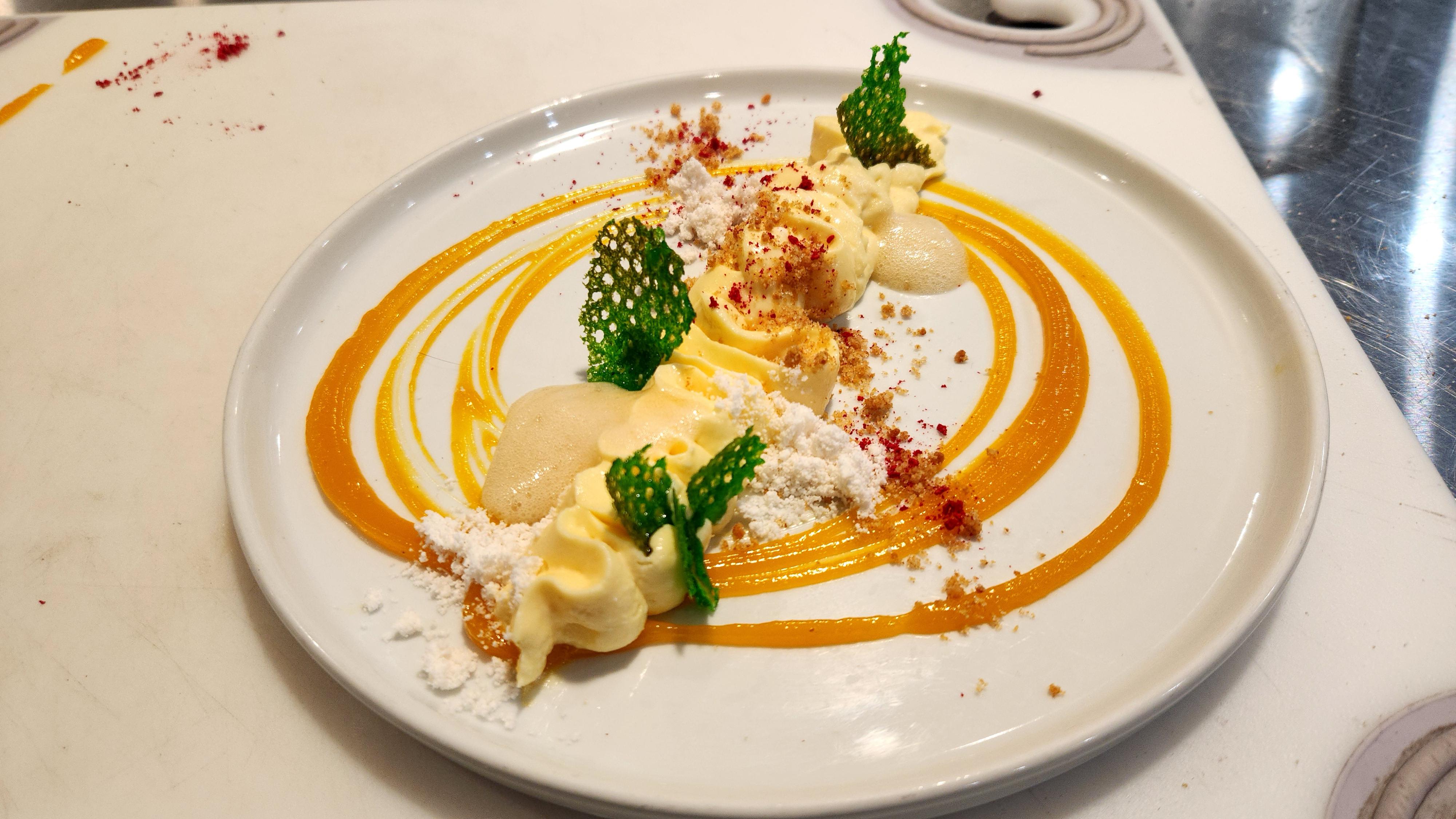 Passion fruit Cheesecake, mango puree, coconut snow, pineapple foam, green lace, freeze dried raspberry dust.by carpten Write A CommentYou must be logged in to post a comment.